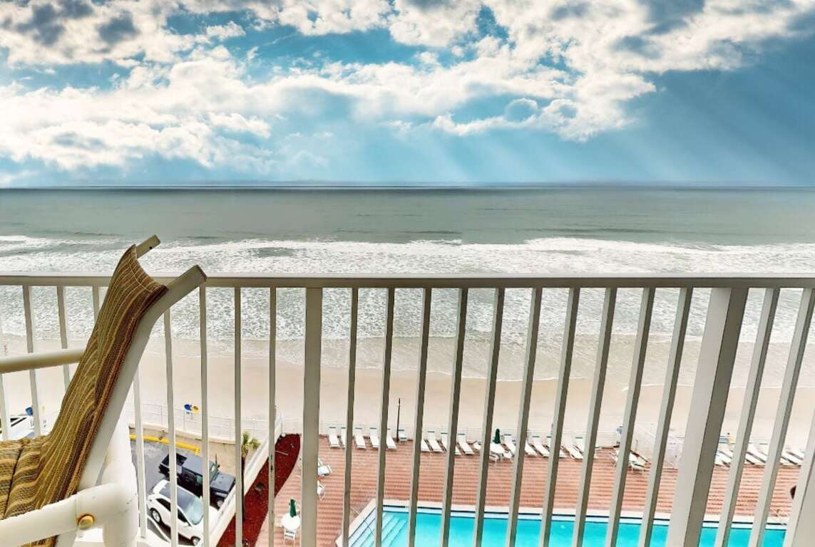 This oceanfront resort unit, located in Daytona Beach, FL, is a top-notch vacation rental with amenities such as a pool, hot tub, and internet access.