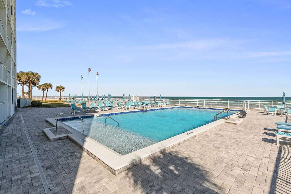 Welcome to Ocean Jewels Club 303 — a cozy studio condo that delivers big on coastal charm and beachfront ease. Located right on Daytona Beach, this third-floor oceanfront retreat offers stunning views, direct beach access, and a shared pool just steps away. It’s the perfect spot for a relaxing solo getaway, couple’s retreat, or a small family escape by the sea. Start your morning with coffee on the balcony, spend your afternoons sunbathing or swimming, and wind down with a cool ocean breeze and a sunset cocktail. Everything you need for a peaceful and carefree stay is right here.