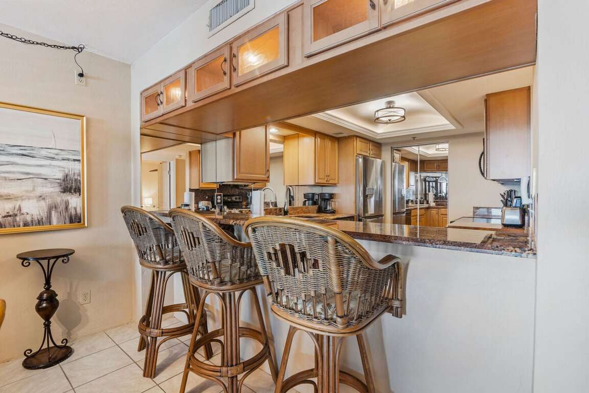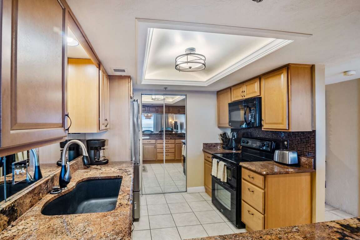 The fully equipped kitchen makes it easy to prepare meals, with full-size appliances, cookware, and all the basics for beach breakfasts and sunset dinners.