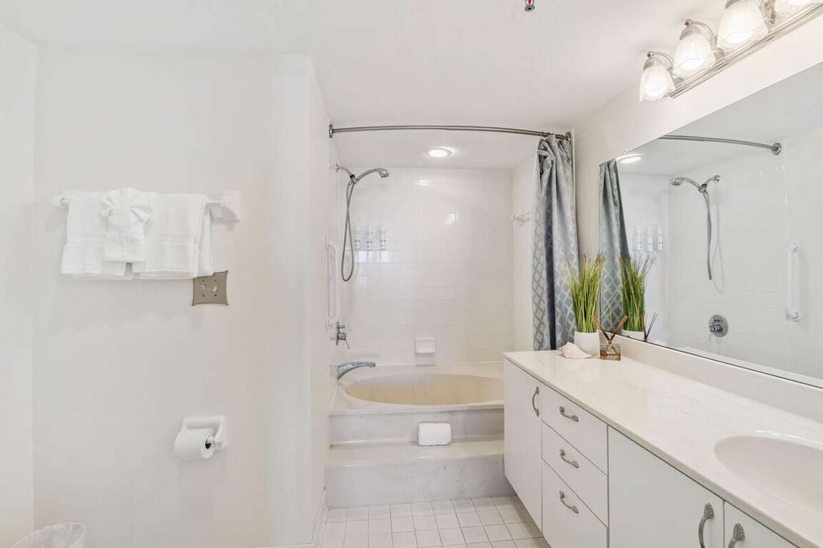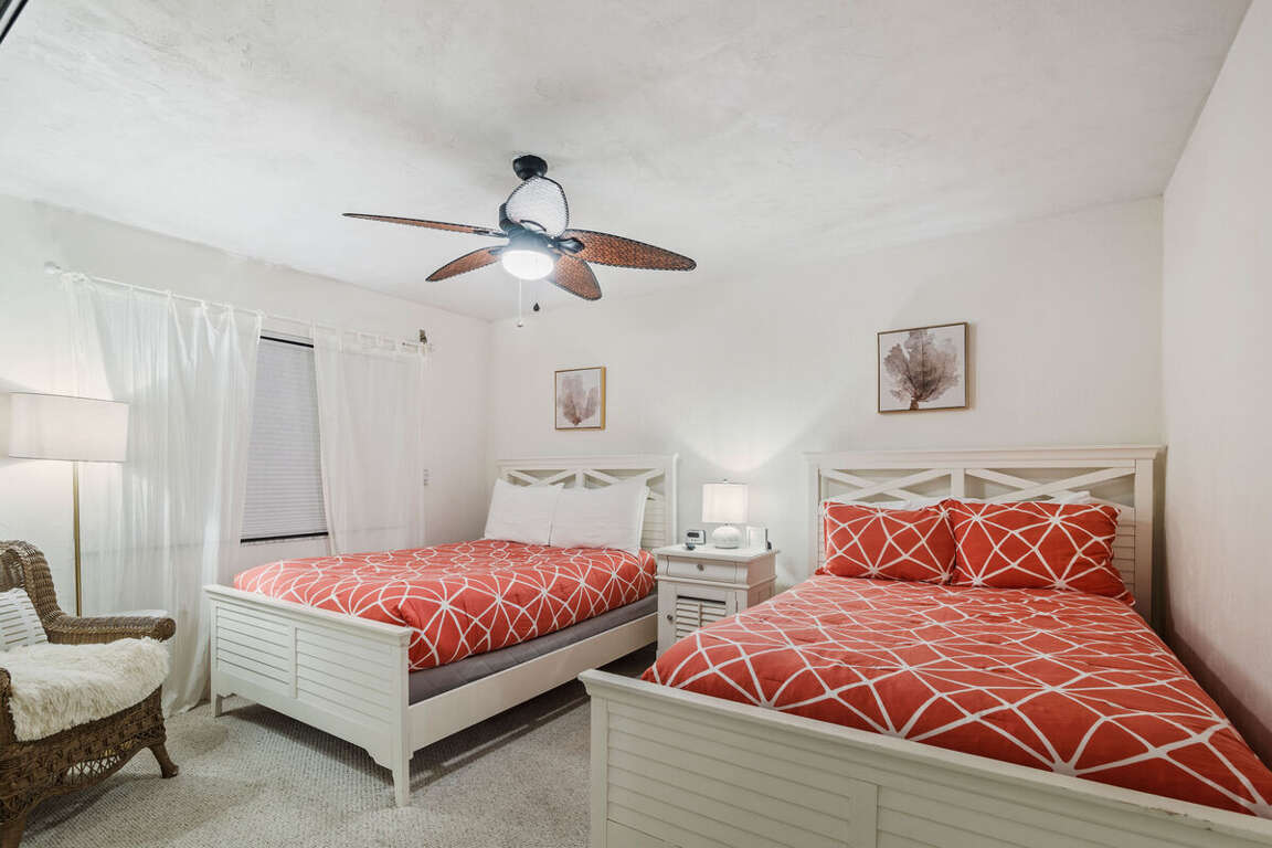 Ashley 1804 features two peaceful bedrooms and a relaxing living space designed for comfort. The master bedroom offers a king bed and private bath, while the guest room includes two double beds—perfect for families or traveling friends. The sofa in the living room pulls out into a queen bed for additional guests.