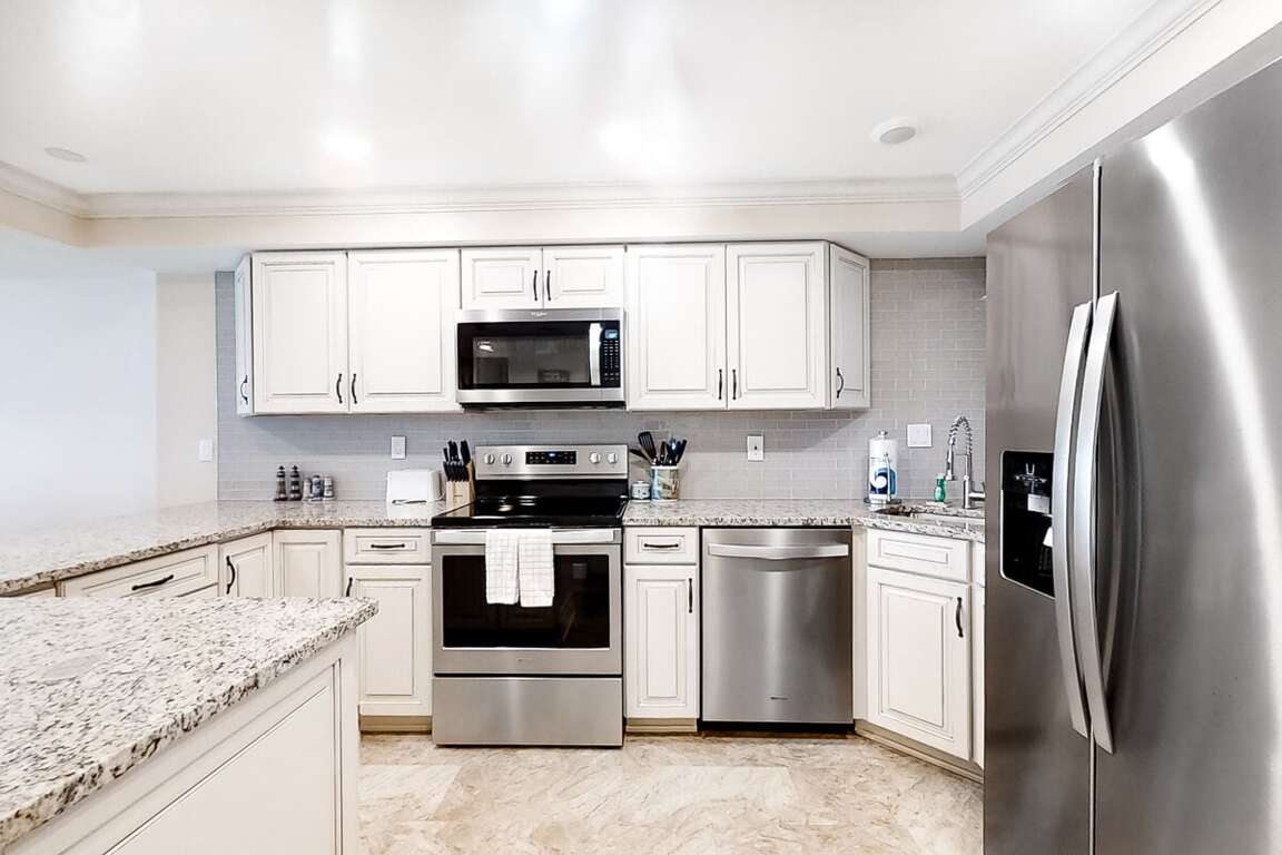 Whether you're whipping up lunch or mixing sunset cocktails, the well-stocked kitchen makes it easy to stay in and savor the view. The open layout makes mealtime feel like part of the vacation.<br />