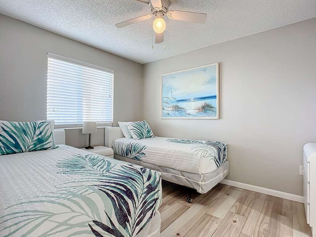 ► Bedroom 2: Two twin beds, flat-screen TV, ensuite full bath<br />