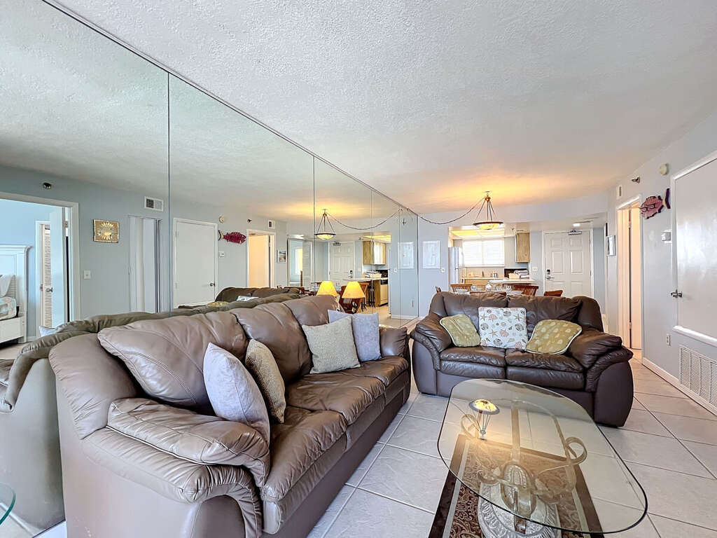 This bright 900 sq ft condo has a breezy open layout that flows from living to dining to balcony. The furnishings are comfortable and beachy, perfect for resting between seaside adventures.<br />
