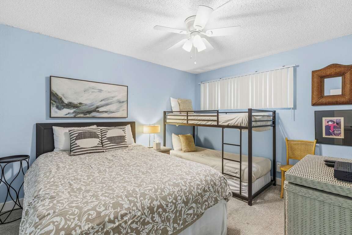 ► Bedroom 2: Queen bed + twin over full bunk