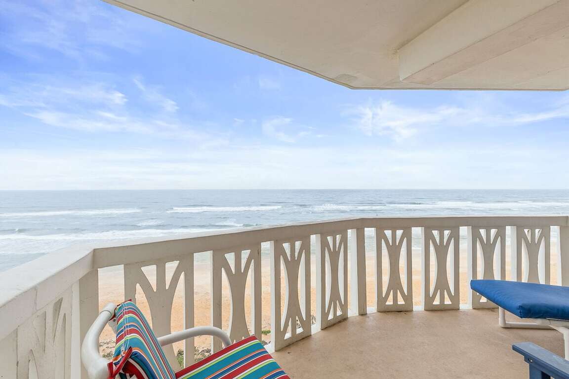 Welcome to Van Lee 604 – The Sea Goose. This beautifully updated oceanfront condo with an unbeatable view is your front-row seat to sunrises over the Atlantic. Located on the quiet, no-drive stretch of Ormond Beach, this sixth-floor retreat blends coastal charm with modern style — featuring fully remodeled bathrooms, Smart TVs in every room, and a relaxing, home-away-from-home vibe. From the moment you step inside, expansive ocean views greet you through floor-to-ceiling windows. The private, furnished balcony is your perfect perch for morning coffee or evening cocktails. Whether you're unwinding by the large oceanfront pool or stepping directly onto the sand, you’ll experience Florida beach life at its best.