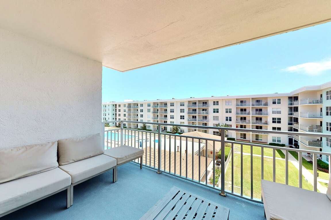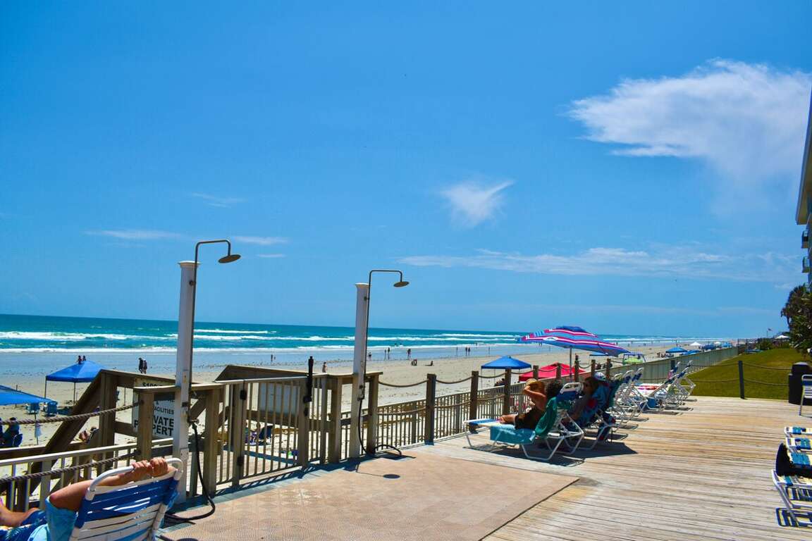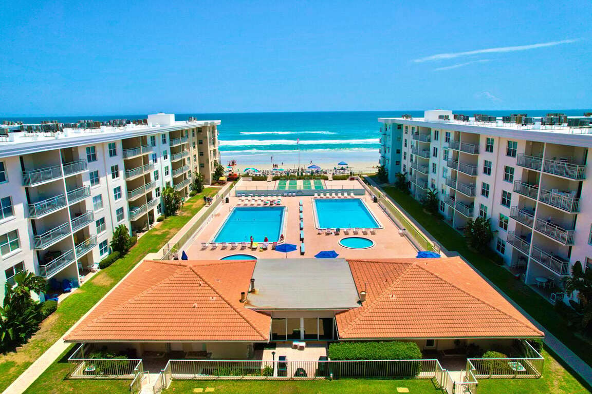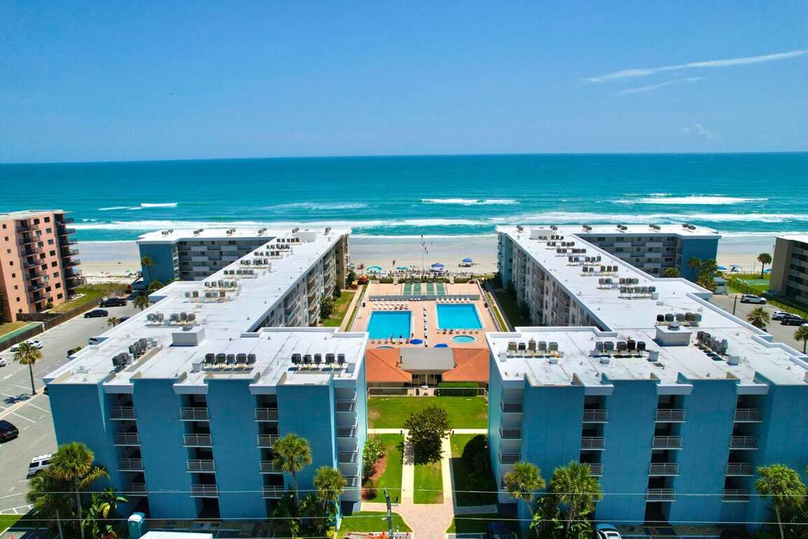 Located in beautiful New Smyrna Beach, FL, this oceanfront, two-bedroom condo is the perfect place to stay for a relaxing getaway. Unwind by the community pool or explore nearby activities like boating, golfing, or deep sea fishing.