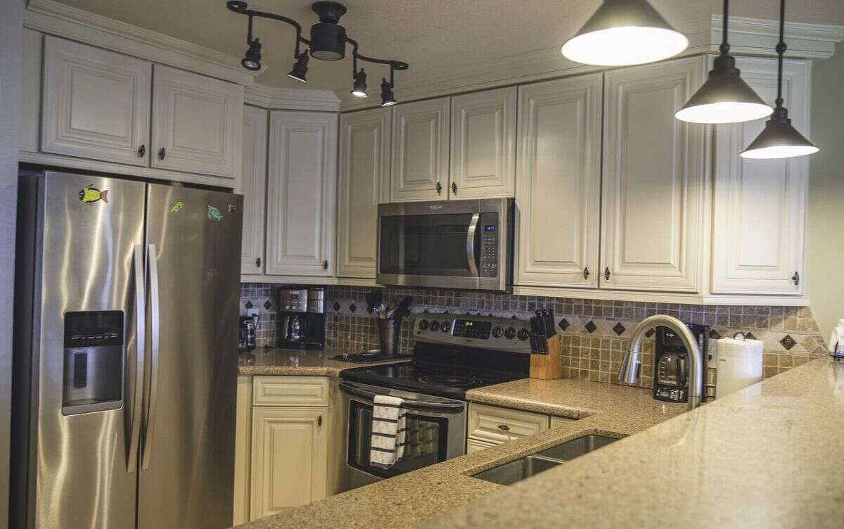 ► Full-size refrigerator, oven, stove, microwave & dishwasher