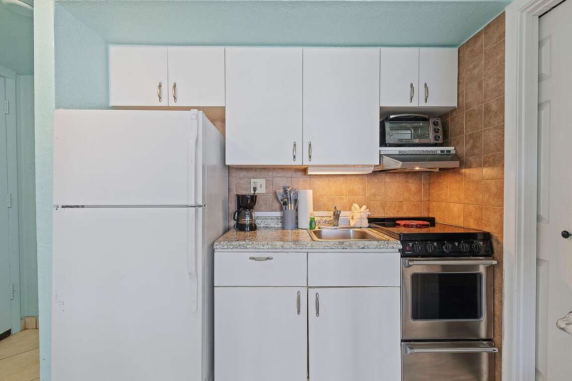 The kitchenette is perfect for keeping things simple — whether it’s morning coffee, quick breakfasts, or easy meals between beach trips.