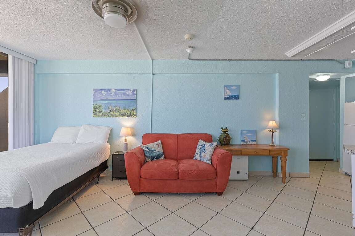 This thoughtfully designed studio gives you the best of both comfort and flexibility. With both a dedicated queen bed and a Murphy bed, guests can enjoy a restful night’s sleep without sacrificing daytime space.