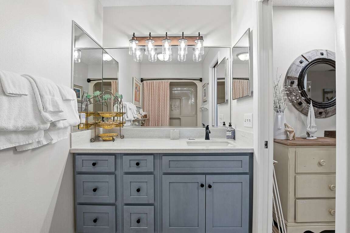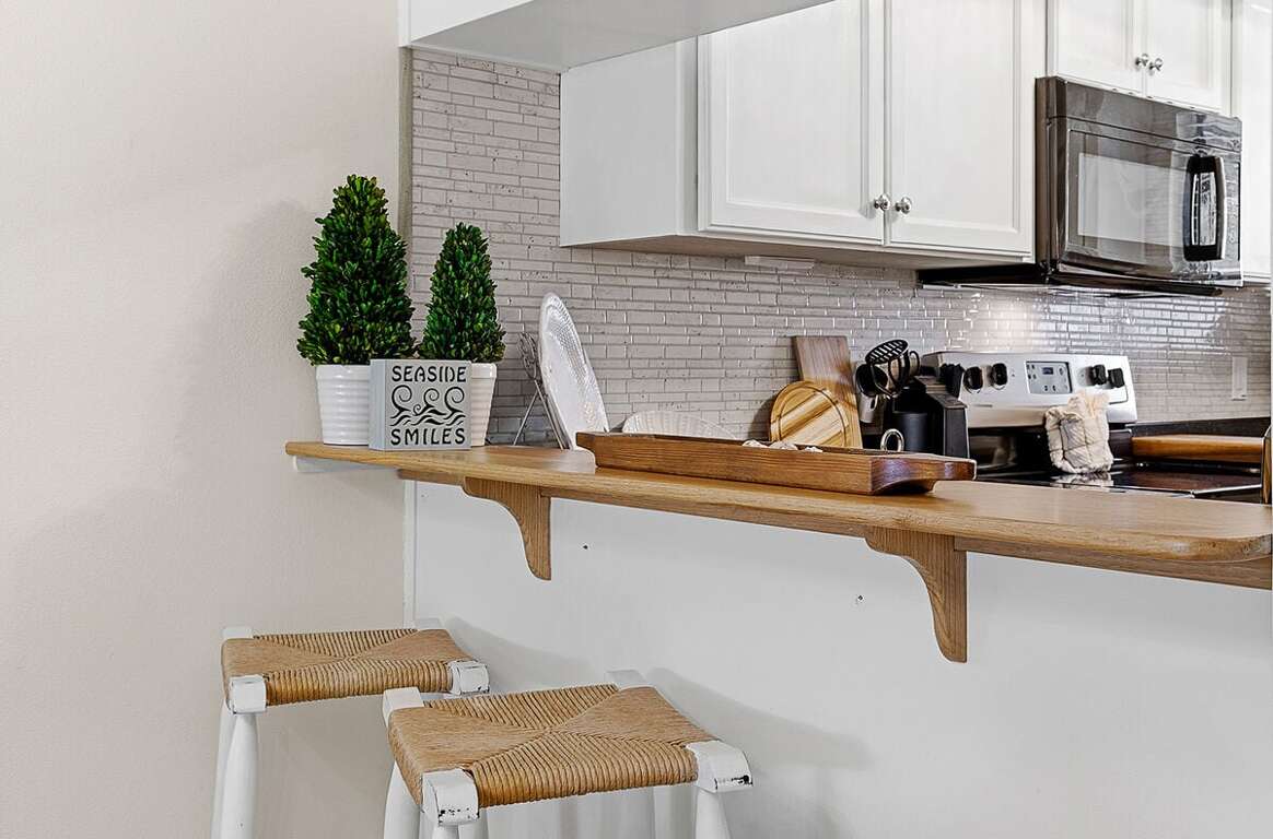 Whip up fresh meals or beach-day snacks in the fully equipped kitchen. The open layout keeps things social, with a breakfast bar and dining space perfect for group meals or card games.