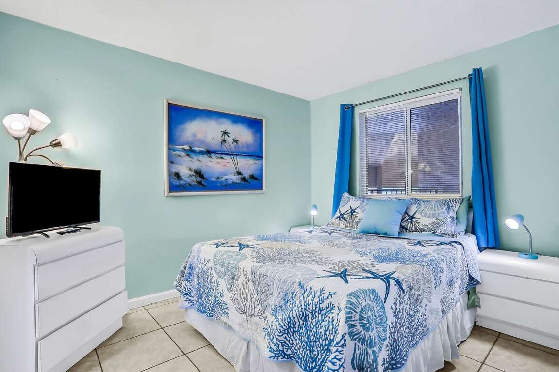 ► Bedroom 2: Queen bed, flatscreen TV