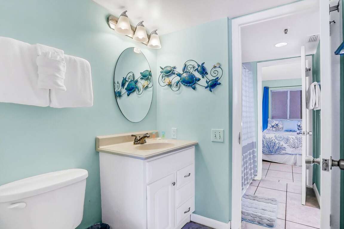 Enjoy a peaceful night’s rest with calming beach breezes and cozy sleeping spaces. The primary suite opens to the balcony, offering a gentle soundtrack of waves for your morning wakeup.