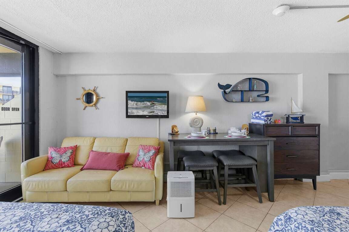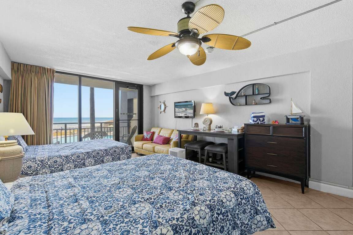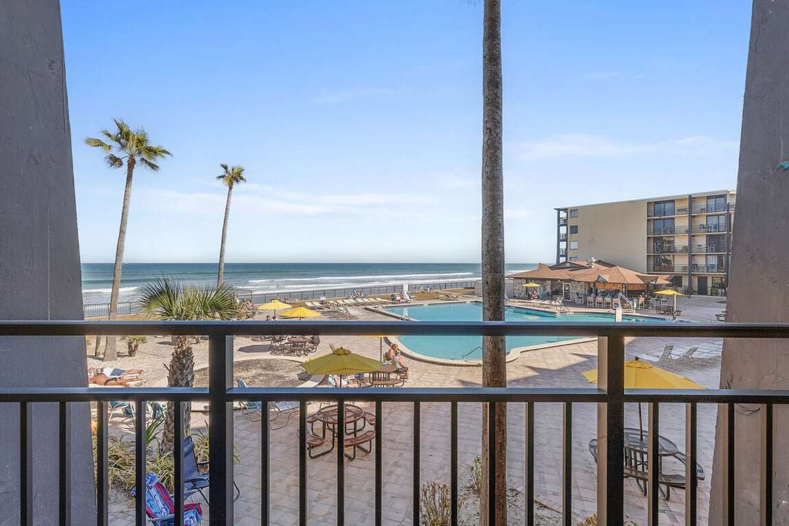 Welcome to Hawaiian Inn 209, a classic oceanfront studio where the Atlantic is your backdrop and beach days are effortless. This bright, breezy studio is ideal for couples or small families looking for a simple, relaxing beachfront escape. Step onto your private balcony to soak in sunrise views, salty air, and the soothing sound of waves — this is Daytona Beach living at its best.