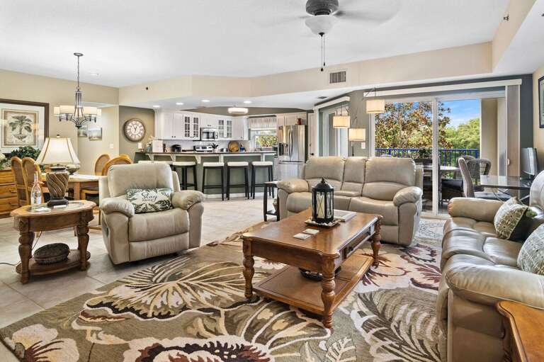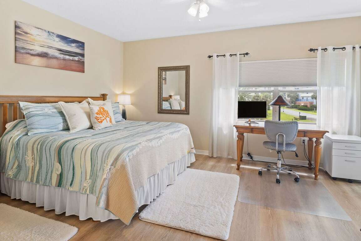Designed with families and small groups in mind, the condo offers generous space to relax together while still enjoying private bedrooms for restful nights. Light coastal décor, comfortable furnishings, and thoughtful layout make the space feel welcoming from the moment you arrive. The primary suite even includes a workspace and private balcony, perfect for enjoying the view while checking emails or planning your next beach day.