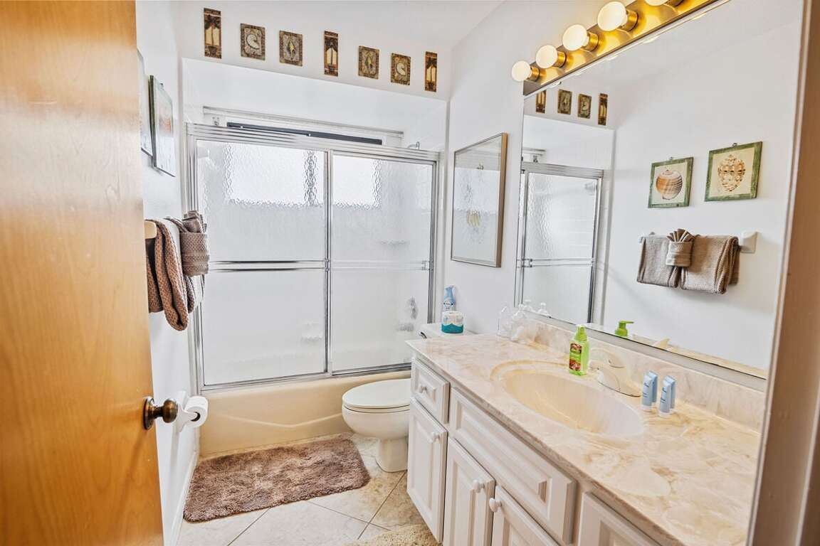 This thoughtfully designed home provides multiple spaces to relax, work, and recharge. The open living area flows comfortably into the dining space and enclosed Florida room, creating an inviting environment for quiet evenings or casual gatherings. The dedicated office area makes it easy for remote work while still enjoying the beach lifestyle. The primary bedroom offers a peaceful retreat with comfortable bedding and a private ensuite bathroom featuring a large walk-in shower. Guests in the second bedroom enjoy a cozy double bed, while the office includes a twin sleeper sofa for additional flexibility.