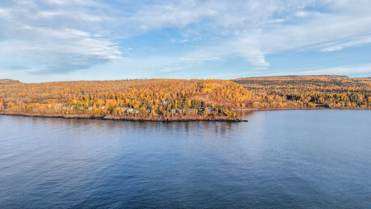 Enjoy a romantic getaway in Terrace Point 11B, a unique lower level condo inspired by the architectural style of Frank Lloyd Wright with sweeping lake superior views. Listen to the sound of the waves hitting the shoreline at Terrace Point 11B while the point of Grand Marais, Minnesota is visible in the distance just a short four-mile drive away.Terrace Point 11B is furnished in the typical style of a Frank Lloyd Wright-inspired home with each piece of furnishing carefully chosen for space. Go down an interior flight of stairs to this lower-level unit and be greeted with large windows and unique angled rooms. The well-stocked kitchen offers modern stainless steel appliances. Enjoy lake views from the living room and bedroom or sit back in the living room and enjoy the beautiful stone fireplace.This unique layout with a decorative wooden divider separating the bedroom and living room can allow for open concept living when open, or privacy when closed. Hidden away in the space between the living room and bedroom you will find the flat-screen TV for viewing from the living room. Many treasures abound in this unique condo vacation rental.Stairs Required: Located on the lower level, there is an interior set of stairs required to access the condo.BedroomKing BedBathroomWalk-In Shower and SaunaArea InformationWhether your trip to the North Shores is for adventure or to relax, you will find plenty to do just a few miles away. Head up the shore to Grand Marais where you will find a variety of ma and pa shops and restaurants. Casually stroll along the harbor or take a hike out to Artist's Point and the Lighthouse. Or head down the shore to Cascade State Park for a short hike to a beautiful waterfall and then grab a bite to eat at the Cascade Restaurant. Lutsen Mountains is about a 15-minute drive away, so bring your skis and hit the slopes for a day (in the winter) or check out the Alpine Slide (in the summer)!Note: Terrace Point is committed to providing its guests with a smoke-free environment. No smoking is allowed inside the home or anywhere on the property.