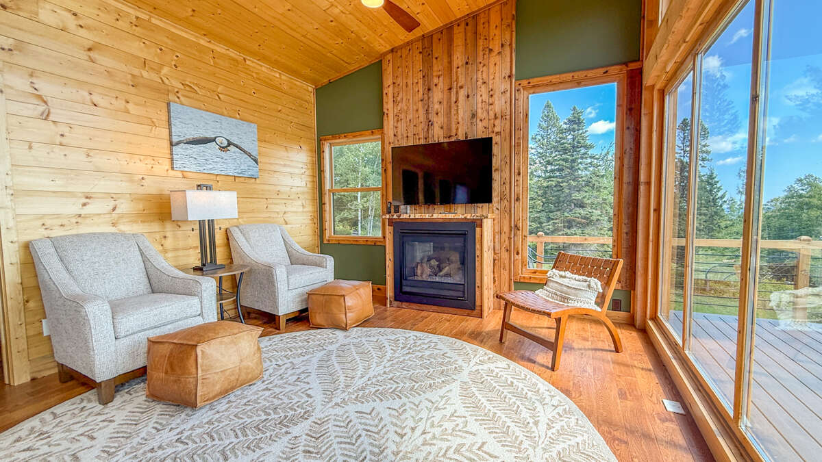 Modern Northwoods Getaway: Cross River Cabin on Minnesotas Scenic North ShoreEscape to Cross River Cabin, a modern retreat nestled in the heart of Minnesotas Northwoods along the iconic North Shore of Lake Superior. Located just off Highway 61 in Schroeder, Minnesota, this newly constructed cabin offers the perfect blend of rustic charm and contemporary comfort, along with breathtaking Lake Superior views from the homes lake-facing deck.Inside the home has an open layout living area on the upper level. Complete with a living room with stone surround gas fireplace, a spacious modern kitchen with all the amenities, and a dining area with a view of Lake Superior. The upper level also has two bedrooms, one en suite, and then another full bathroom.Downstairs you will find a second living room ideal for games, movies, or a kid-friendly hangout. Plus, a rejuvenating infrared sauna, perfect after a day of biking the nearby Gitchi-Gami State Trail. The lower level also has a third bedroom and full bathroom, bringing the total to three bedrooms and three bathrooms, plus an additional sleeping area in the lower level living room.This thoughtfully designed home includes modern conveniences such as high-speed Wi-Fi and an EV charger, making it easy to relax or work remotely.While Cross River Cabin is not directly on the water, you'll enjoy stunning Lake Superior vistas and easy access to the mouth of the Cross River, where youll find Father Baragas Cross, a small public beach, and a picnic area just a short walk or drive away.Situated in charming Schroeder, Minnesota, guests are steps from local favorites like the Cross River Heritage Center, a beloved local bakery, a neighborhood bar, and an eBike rental. Outdoor enthusiasts will love the cabins proximity to hiking trails, waterfalls, and endless North Shore adventures.Whether youre seeking a romantic escape, a family vacation, or a peaceful work-from-anywhere stay, Cross River Cabin is your basecamp for exploring the best of Lake Superiors North Shore.Pet-Friendly: This home is pet-friendly with an additional fee. There is a 2-pet maximum.EV Charger: The EV charger is a Tesla charger. Adapters may be required for non-Tesla vehicles.Construction Nearby: There is a small construction project happening at the property adjacent to Cross River Cabin. This home shares part of the driveway with the home. Occasional construction noise may be heard during your stay.Bedrooms/Beds/LocationBedroom 1 - King Bed and Attached Bathroom - Main LevelBedroom 2 - Queen Bed - Main LevelBedroom 3 - Twin Bed - Lower LevelLiving Room - Queen Futon - Lower LevelBathrooms/Sizes/LocationBathroom 1 - Walk-in Shower Attached to Bedroom 1 - Main LevelBathroom 2 - Walk-in Shower - Main LevelBathroom 3 - Shower/Tub Combo - Lower LevelArea InformationCross River Cabin is located right in the town of Schroeder. While not a large, bustling town, Schroeder is home to several locally owned and operated businesses including a bar and a bakery. Here you are just a short distance from many area attractions. Father Baraga's Cross, a historical marker, is located right across the street and down a bit, easy walking distance or a short drive away. Temperance River State Park is practically in your backyard with miles of hiking trails and beautiful waterfalls. Lutsen Mountains Ski and Summer Recreation Area is about 15 miles away and offers both winter and summertime activities. Hungry for a bite to eat? Hop in the car and head up the shore and check out some of the great restaurants in Lutsen and Grand Marais. Many feature live music from popular local artists throughout the summer. Grand Marais is about a 30-minute drive away for a relaxing day trip to this quaint little town, featuring dozens of unique, locally owned shops and restaurants.