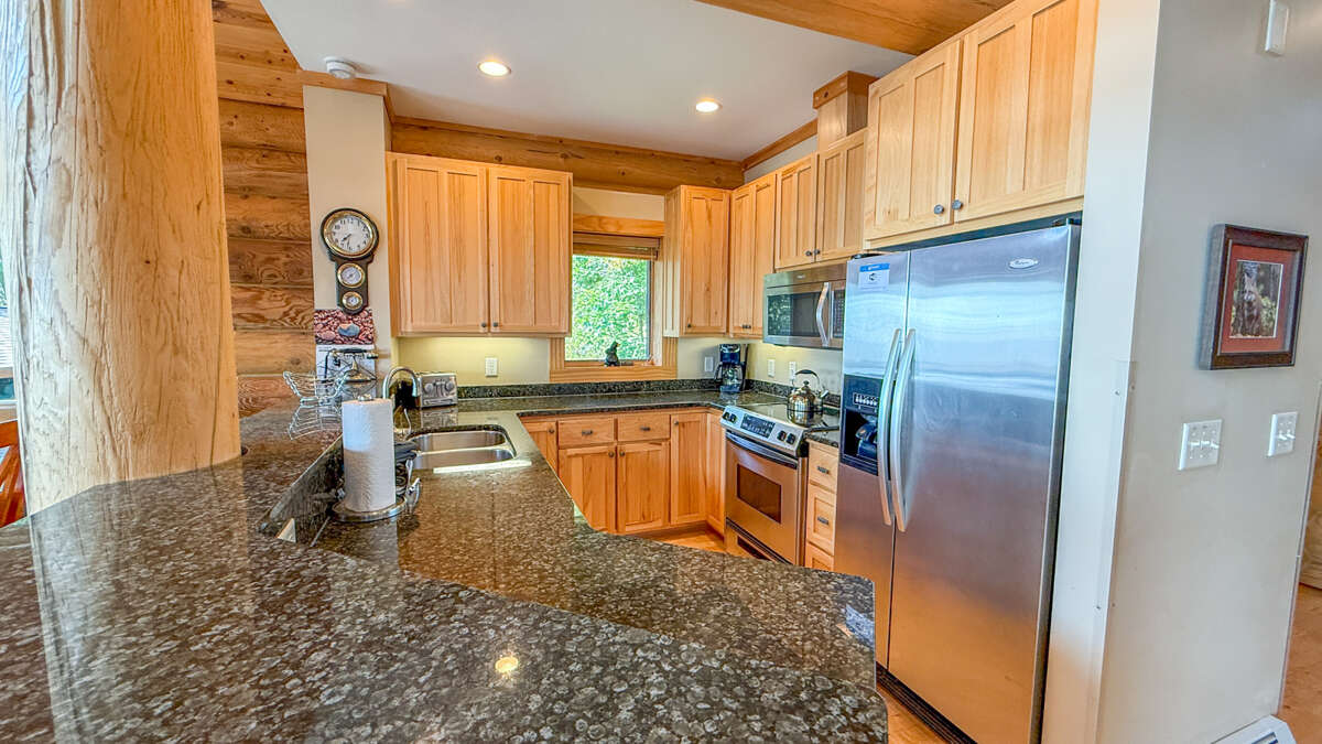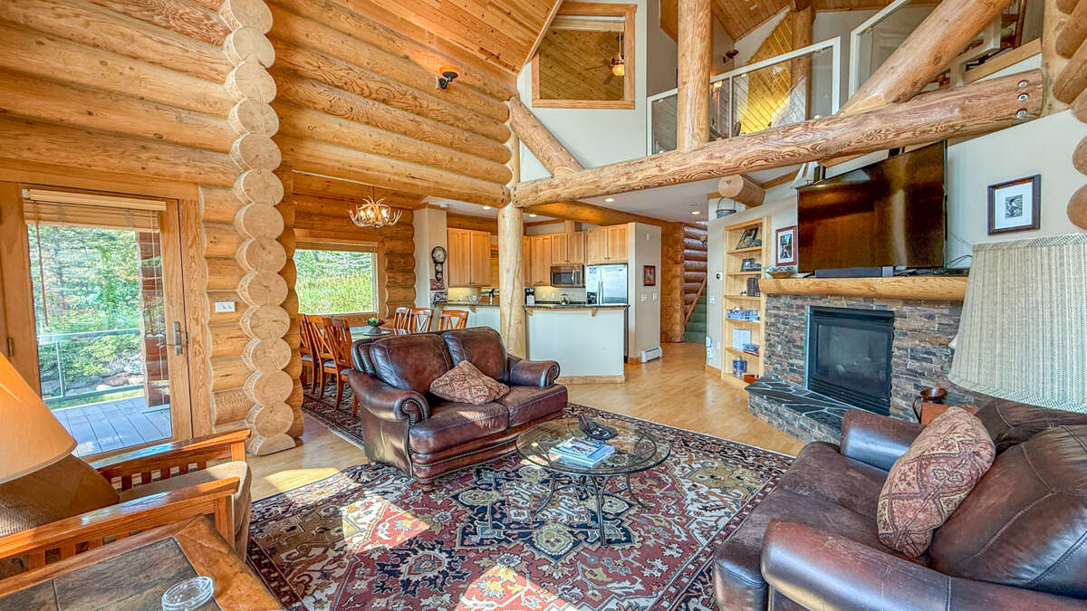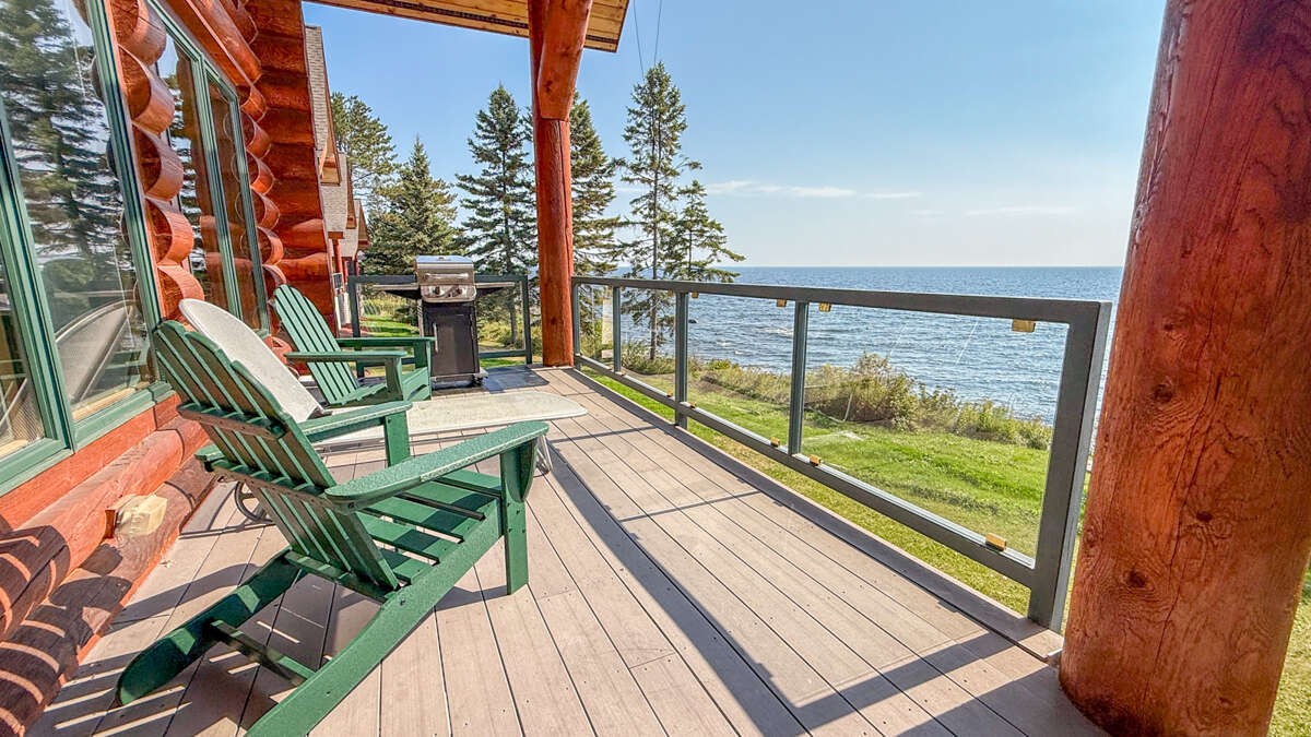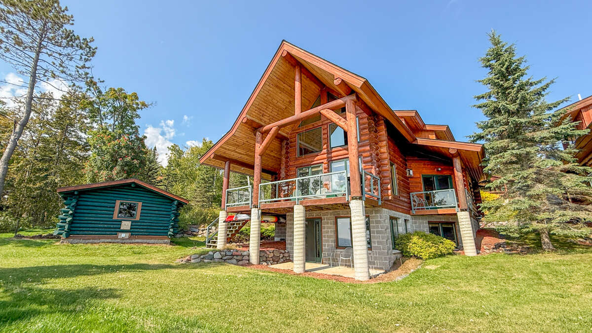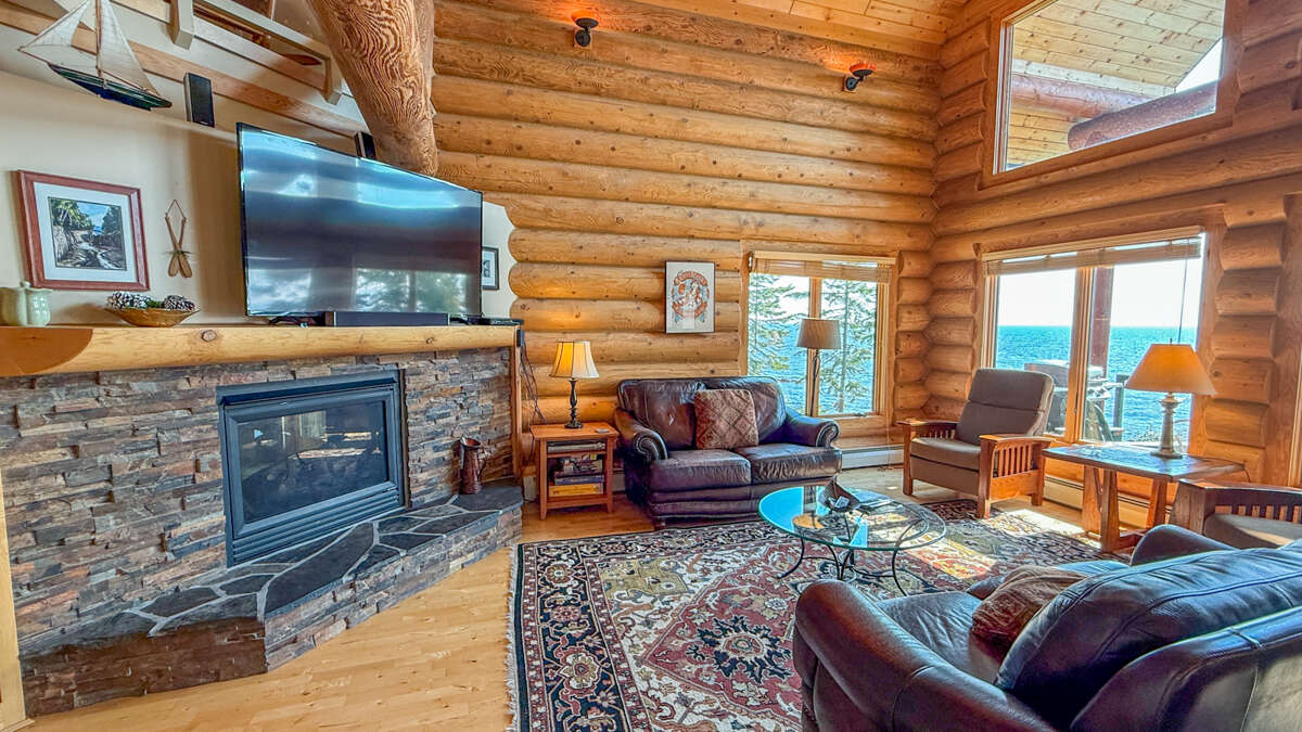 Chaika - a Luxurious Modern Log Cabin on Lake SuperiorFrom the moment you walk into the large open living space, your eyes will be drawn to the sweeping, unobstructed Lake Superior views from the floor to ceiling windows in Chaika (formerly known as Temperance Landing 24) in Schroeder, Minnesota. This luxurious log home is spacious and inviting and just waiting to be called your North Shore home away from home.Chaika (Ukranian for "seagull") is a 3-story home that boasts 3 bedrooms, 3 bathrooms, and two living areas. The main level features a large open living space with a living room, dining room, and kitchen. The kitchen features granite countertops with high-end stainless steel appliances- a cook's dream come true! The double-sided gas fireplace in the living room and main level primary bedroom creates a warm and peaceful ambiance to accompany the sounds of Lake Superior. Enjoy the lake-facing deck off the living room area, as well as a lower level patio walk-out.Each of the 3 levels of home features a bedroom and a bathroom. The primary bedroom is located on the main level and has an in-room soaker tub. On the upper level you will find another bedroom, a full bathroom, and a family space in the loft. The third bedroom and full bathroom are located on the lower level along with a family room.Take a stroll down to the shared section of cobblestone beach where you can skip rocks into the lake or just find a comfy rock to lay back on and listen to the waves roll onto the shore. This home is perfect for a larger family or group of friends traveling together, with room for everyone and plenty of privacy to go around.Whether your next North Shore trip is to relax or to find an adventure, Chaika has a great central location that can accommodate a large group for a fun family getaway or a ski trip for a group of friends. This Home is Pet-Friendly! One dog is welcome with an additional fee. Exception may be made for 2 small dogs. Please inquire if you plan to bring more than one dog.Bedrooms/Bed Sizes/Location Master Bedroom - King Bed and Jetted Tub - Main Level Guest Bedroom 1 - Queen Bed - Upper Level Guest Bedroom 2 - 2 Twin Beds - Lower LevelBathrooms/Location Master Bathroom - Glass Walk-in Shower - Main Level Guest Bathroom 1 - Shower/Tub - Upper Level Guest Bathroom 2 - Shower/Tub - Lower LevelArea InformationAt Chaika, you are just a short distance from many area attractions. Father Baraga's Cross, a historical marker, is located right next door, easy walking distance or a short drive away. Temperance River State Park is practically in your back yard with miles of hiking trails and beautiful waterfalls. Lutsen Mountains Ski and Summer Recreation Area is about 15 miles away and offers both winter and summertime activities. Hungry for a bite to eat? Hop in the car and head up the shore and check out some of the great shops and restaurants in Tofte and Lutsen. Grand Marais is about a 30-minute drive away for a relaxing day-trip to this quaint little town, featuring dozens of unique, locally owned shops and restaurants.