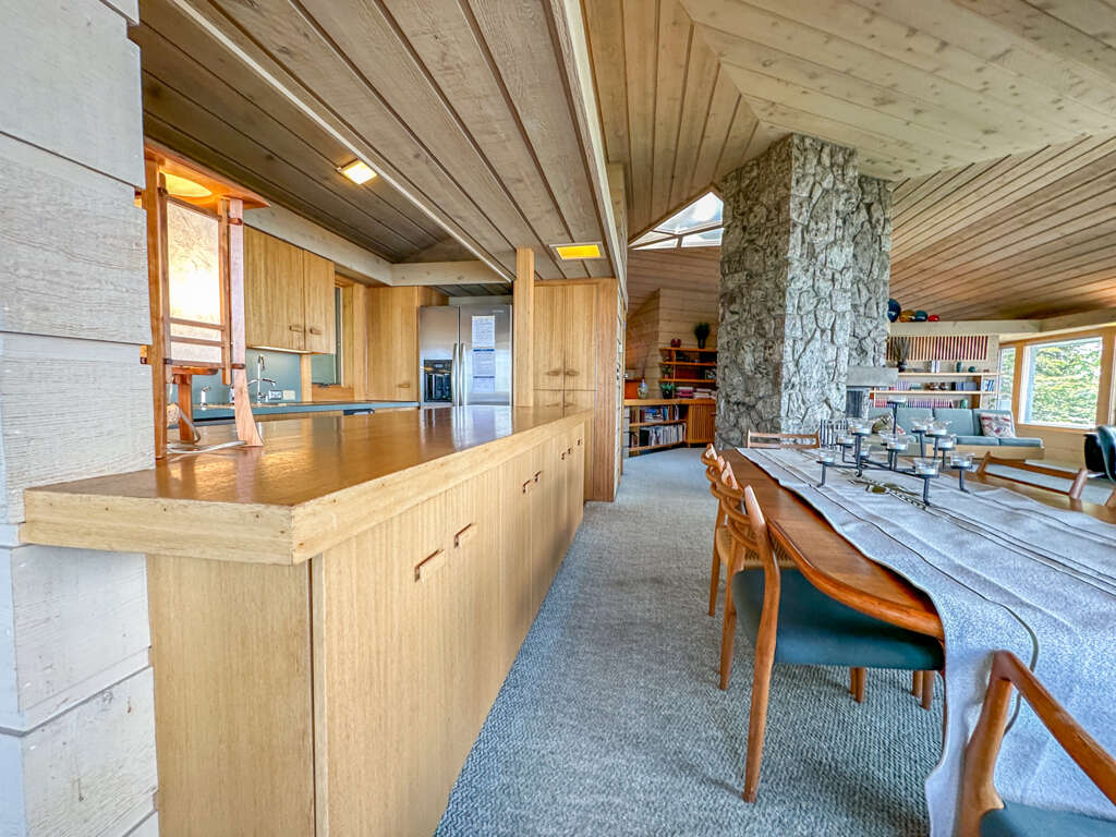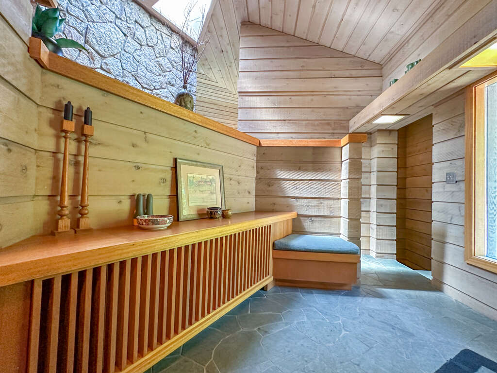 Cascade Vacation Rentals is pleased to once again offer this unique example of American architecture located on the wild shores of Lake Superior just outside Grand Marais, Minnesota. Seagull House has a strong connection to the most famous American architect, Frank Lloyd Wright, and is an excellent example of Prairie architecture, for which Mr. Wright is known. John Howe, the architect of Seagull House, was Mr. Wright's chief draftsman at Taliesin for more than 25 years and designed and built this home, which is now available to rent as part of your North Shore experience.This 3 bedroom, 3 bathroom home is located a short drive up the shore of Lake Superior from the quaint lakeside town of Grand Marais. The unique angled rooms, low-pitched roof, and open interior spaces in this home are staples of the Frank Lloyd Wright prairie-style architecture that John Howe helped make famous back in the 1940s and 50s. Each room is carefully constructed and designed so that nothing is there by accident. Every piece of furniture, artwork, and even the knickknacks have been selected to match the design elements intended for this space. Because of this, many pieces in this home hold great value and it is why we do not recommend this property for families with young children.The unique architecture isn't all this home has to offer! Nestled on a beautiful plot of land against the shores of Lake Superior, you will get to enjoy a private ledge rock shoreline with easy to moderate access so you can enjoy the sights and sounds of the Big Lake. There is a gas and charcoal grill so cooking a meal outside in the warm summer months won't be an issue no matter what your grilling preference is. On cold winter nights, you can curl up in front of the wood-burning fireplace and enjoy a book on John Howe and Frank Lloyd Wright's architecture while sitting in one of their homes! Large windows take advantage of the Lake Superior views and the well-equipped kitchen allows you to make a delicious home-cooked meal. You'll feel right at home at Seagull House.EV Charger Port: The garage is equipped with a 50-amp NEMA 14-50 outlet that can permit high-rate electric vehicle charging. No EVSE is provided. Camera Warning: There is a Ring doorbell on the front door to monitor the home when not occupied. Cameras are not used to monitor guests while in the home. There is also a motion-activated security camera over the back door intended for monitoring the home when not occupied.Bedrooms/Bed Sizes/LocationBedroom 1 - Queen Bed - Main LevelBedroom 2 - Queen Bed - Walk-Out Lower LevelBedroom 3 - Queen Bed - Walk-Out Lower LevelBathrooms/LocationBathroom 1 - Shower/Tub - Main LevelBathroom 2 - Shower - Walk-Out Lower LevelBathroom 3 - Shower - Walk-Out Lower LevelArea InformationThe location up the shore from Grand Marais means you have ample amounts of privacy but are also close to everything the North Shore has to offer. Miles of hiking, biking, snowmobiling, and cross-country ski trails are just a short drive away. Several state parks are also easy to access from this home. Or head on into Grand Marais and do some shopping at the unique ma and pa shops that make the area so unique. No chain stores here! The restaurants are also one of a kind! You could easily spend a month at Seagull House and still find a new spot to explore and enjoy.