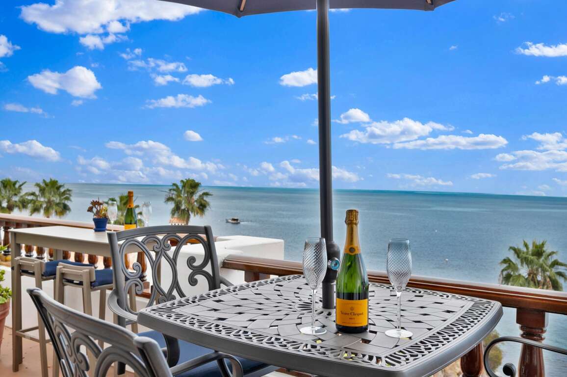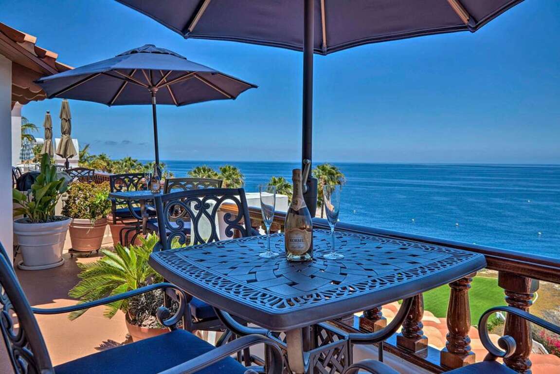 Outdoor lifestyle: Ocean View Terrace with new outdoor furniture, including tables, 6 swivel chair and two umbrellas overlooking Pacific Ocean. From your private balcony, you can see whales, seals and dolphins. From your spacious and private balcony, you can enjoy alfresco dining with a gas grill.
