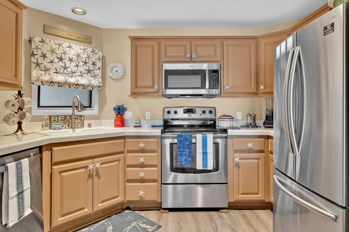 Kitchen: Fully equipped with newer stainless steel appliances. Includes pots, pans and dishes. Also includes wine glasses, wine openers. Dishwasher, coffee maker, cooking essentials, toasters, dishwater, and flatware. Create delicious dishes with your stainless steel appliances in a sparkling kitchen. The new kitchen table is the perfect place to gather for home-cooked meals. You can prepare a special dinner in a fully-stocked kitchen.