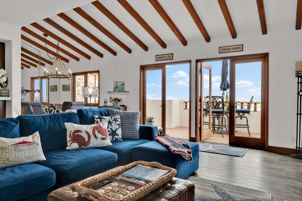 This exclusive oceanfront property boasts a prime location, fantastic resort amenities, and panoramic views of Pacific Ocean from all rooms. It also features vaulted ceilings, a new dining table, large Smart TVs throughout, and a heated pool/spa with ocean views. Enjoy making memories with your family and friends that will last a life time. This exceptional, light-filled luxurious oceanfront Villa will make you and your guests feel at ease the moment you enter. Perfect for those who want to indulge in a luxurious Catalina getaway! The private outdoor balcony offers 360-degree views of the ocean and is one Hamilton Cove's largest balconies. It also features brand new patio furniture, a BBQ and a new 6 seater Golf Cart.