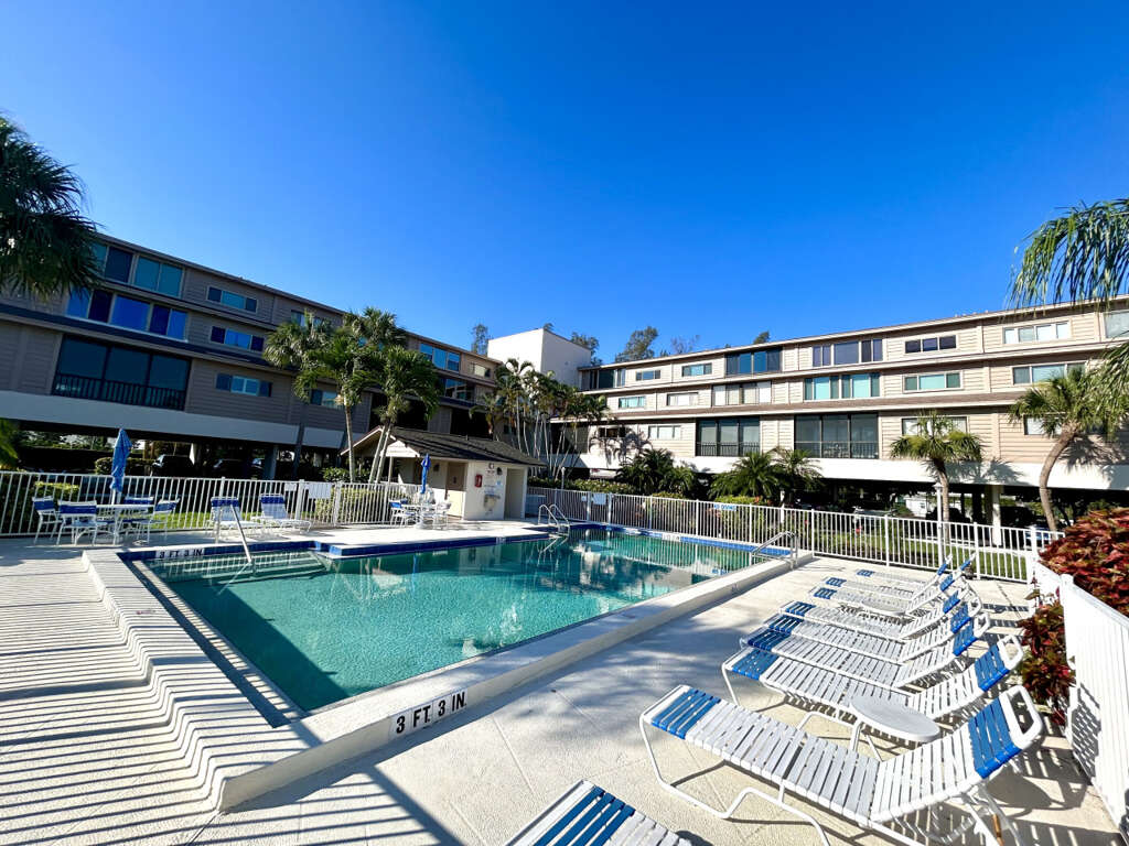 The community offers resort-style amenities including a heated pool, spa, fitness center, tennis/pickleball courts, and billiards room. You’ll love the convenience of being close to area restaurants, bars, golf, shopping, parks, IMG Academy, and, of course, the island.