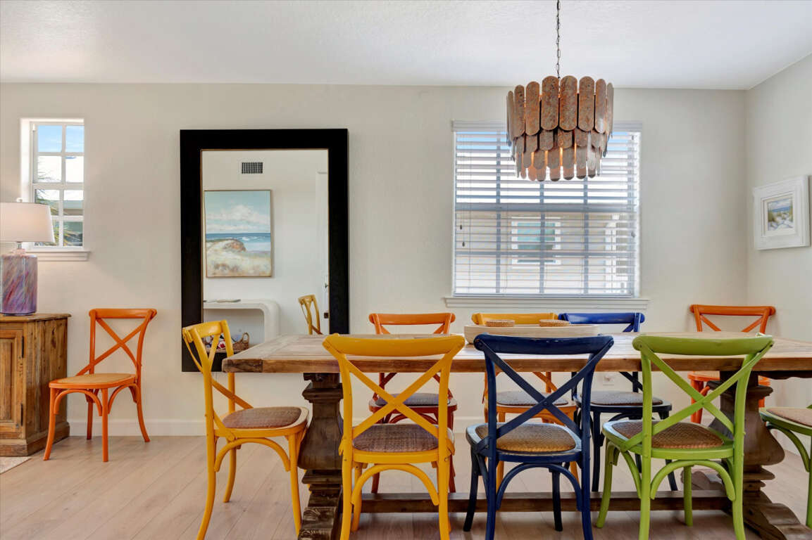 The upstairs unit offers two comfortable bedrooms and one and a half baths, including a king suite perfect for unwinding after a day in the sun. A full kitchen, cozy living area, and spacious indoor dining make it easy to enjoy relaxed meals, game nights, or a quiet morning coffee before heading out for the day. Thoughtfully designed for comfort and connection, the space feels open and welcoming without sacrificing privacy.
