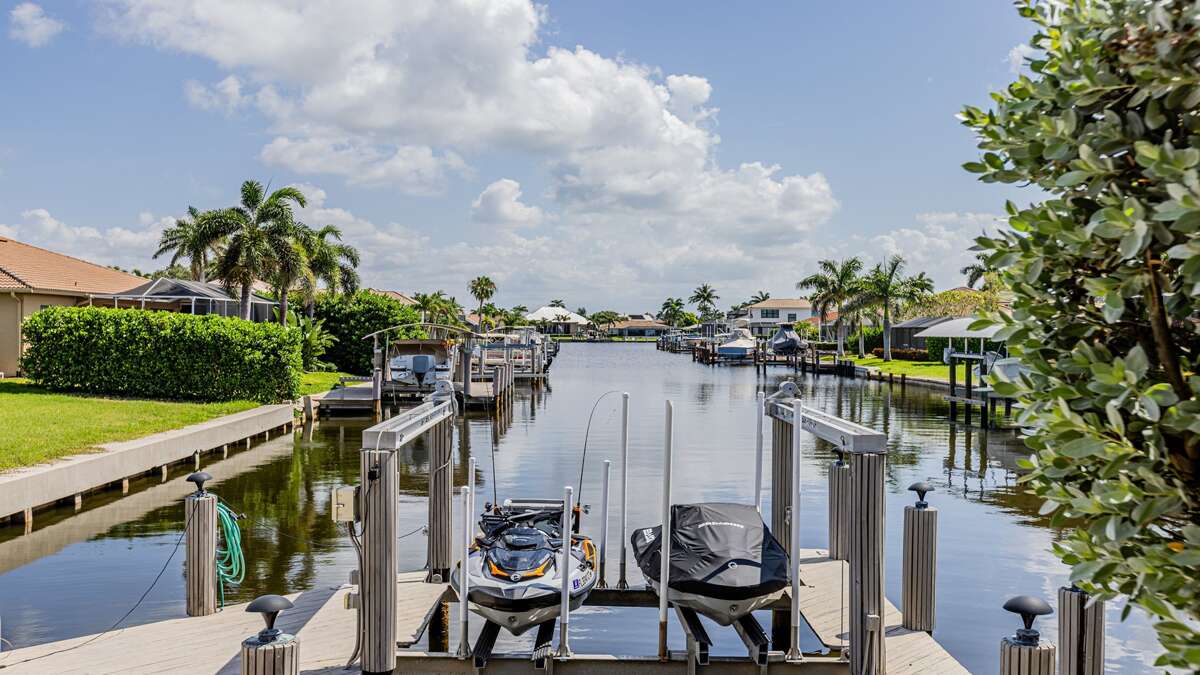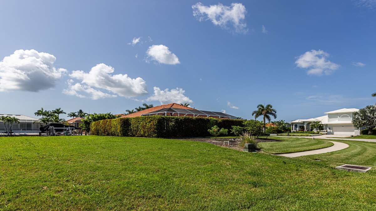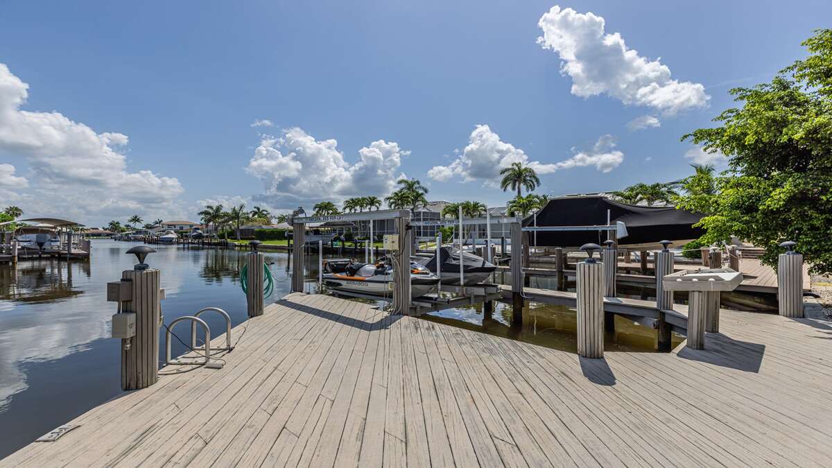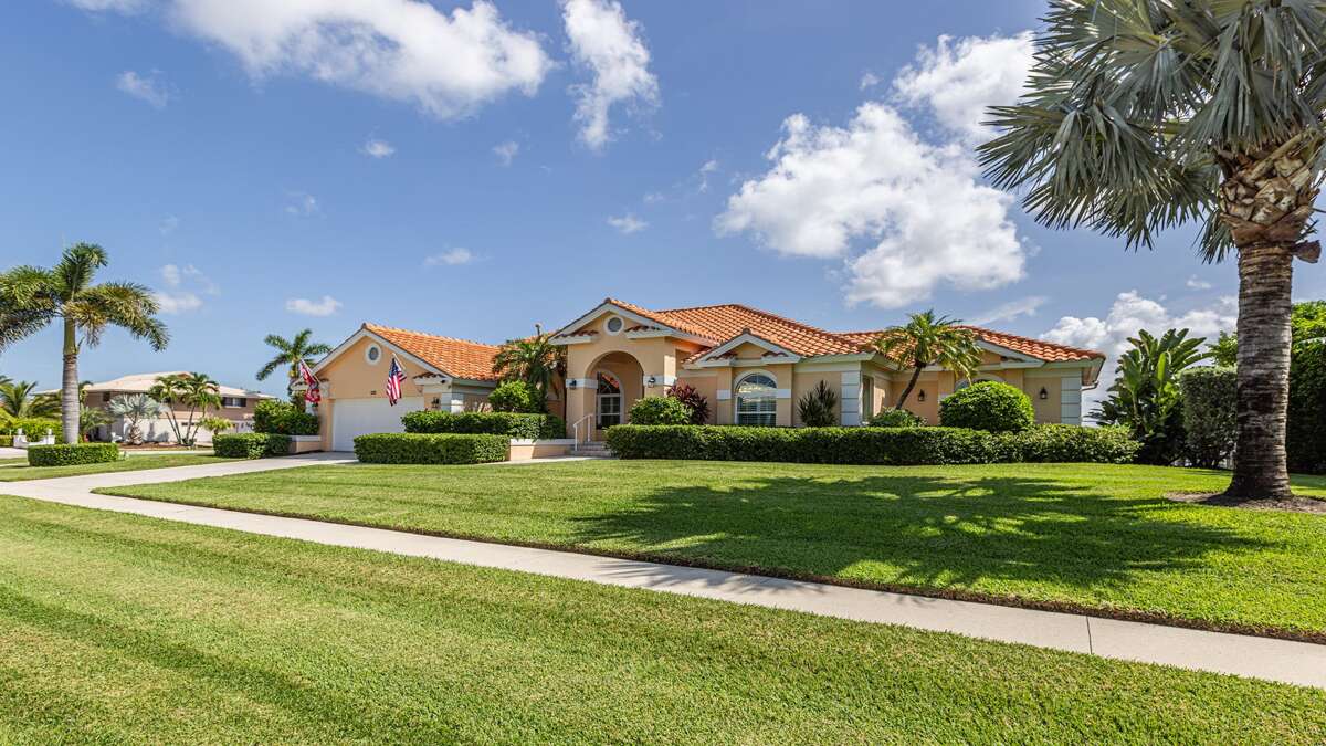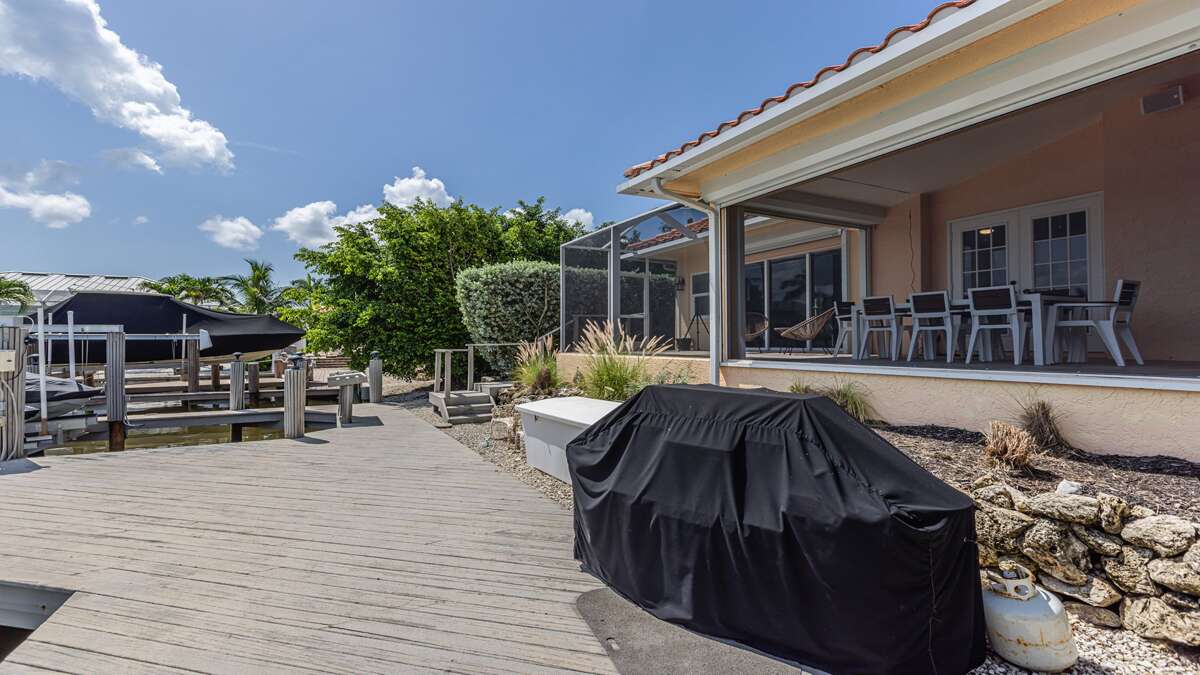 Beautiful 3 bedroom/2 bath waterfront pool home with long water view! Comfortable flowing floor plan with high ceilings, loads of windows & light and great exterior access from nearly every room. Superb location right in the heart of Marco Island, less than a mile to the YMCA, Mackle Park, shopping, and grocery store. Outstanding neighborhood of nice homes and quiet streets. Prefer a nice place to sit in the shade? This home has it with some of the lanai facing north. Love to sunbathe? The pool at this home wraps around the south and west side for all day sun and an easily accessible bathroom. The interior of this great room floor plan home makes it perfect for entertaining. Featuring an updated cook's dream kitchen with double oven, loads of counter space, ample bar seating for guests, excellent lighting, and stainless appliances and gas stove. There is a whole house sound system and home theater with a 70-inch TV and sound system in the living/dining area. The primary bedroom is extremely spacious with a king size bed and TV. South facing primary bath is nice and bright and includes double sinks and vanity, soaker tub, walk in shower, linen closet, and large walk-in closet. At the other end of the home are 2 guest bedrooms, the waterfront room features a king sized bed and TV and the other features full size bunk beds and a TV as well. These rooms share an updated coastal style bath with access to the pool.