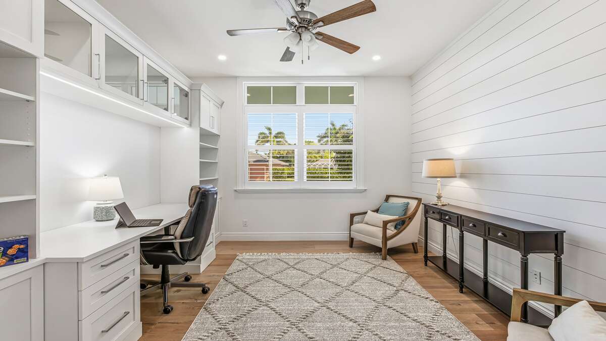 Need to work while on vacation? The spacious office/den features a custom-built desk and bookshelves, providing a quiet environment with double doors and ample space to meet all your needs. Enjoy seamless connectivity with high-speed WIFI.