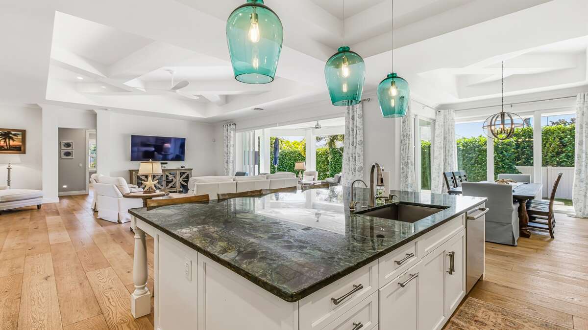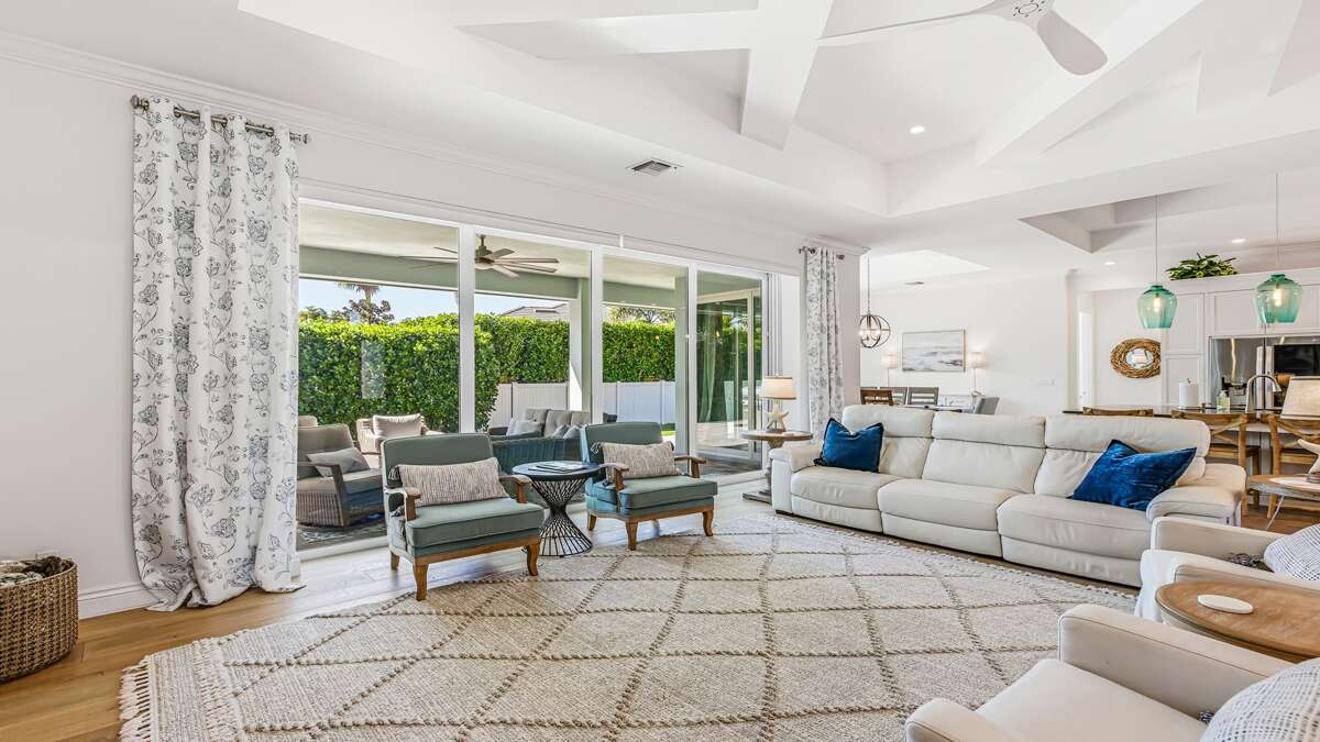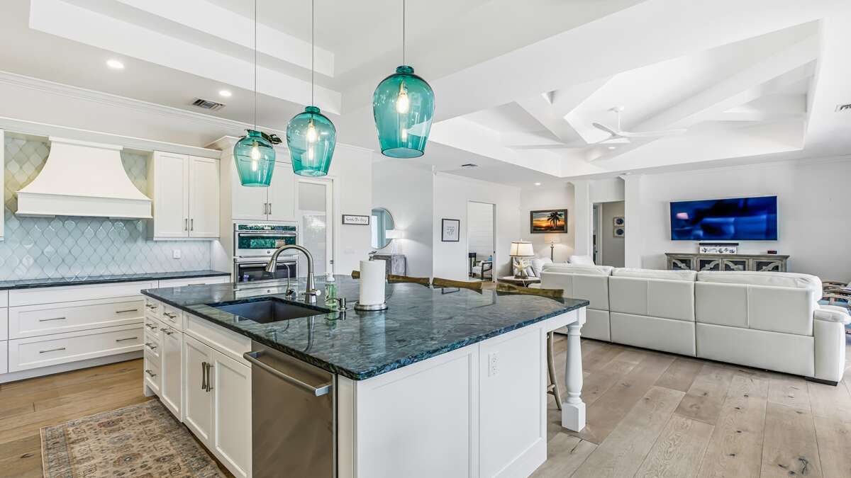Are you looking for your perfect island getaway? Your search is over. Welcome to our luxurious 2500 square foot 3-bedroom 2-bathroom home. The minute you enter the foyer, you are greeted with an inviting coastal atmosphere where elegance meets comfort in the best way. The grand 14-foot decorative ceilings allow the abundance of light to shine in from the southwest exposure.