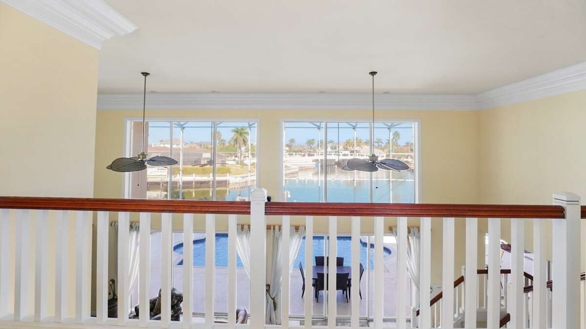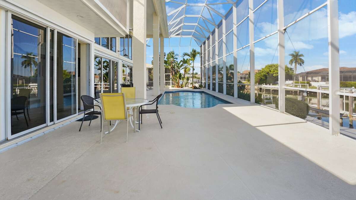 Beautiful waterfront home with 3 bedrooms and a den on Marco Island. This lovely home boasts stunning water views. The perfect place for a vacation in paradise is the large pool and lanai. This home features two living areas as well as a large eat-in kitchen. Granite counter tops are used in the kitchen, as well as two ovens and an island with two chairs. The family room features a large-screen TV that can be enjoyed by the entire family.