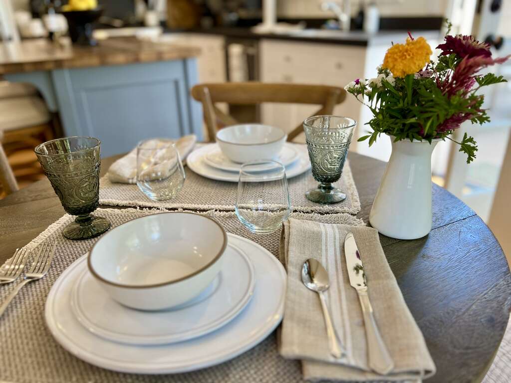 The fully equipped kitchen boasts modern appliances, making meal preparation a breeze. Enjoy your morning coffee at the breakfast table, or dine al fresco on the patio surrounded by lush greenery. There you will also find a gas barbeque or a Big Green Egg for grilling, and a Tuscan built-in pizza oven. Clementine Cottage offers private Chef hire services, should you wish to use the wood-fired pizza oven.