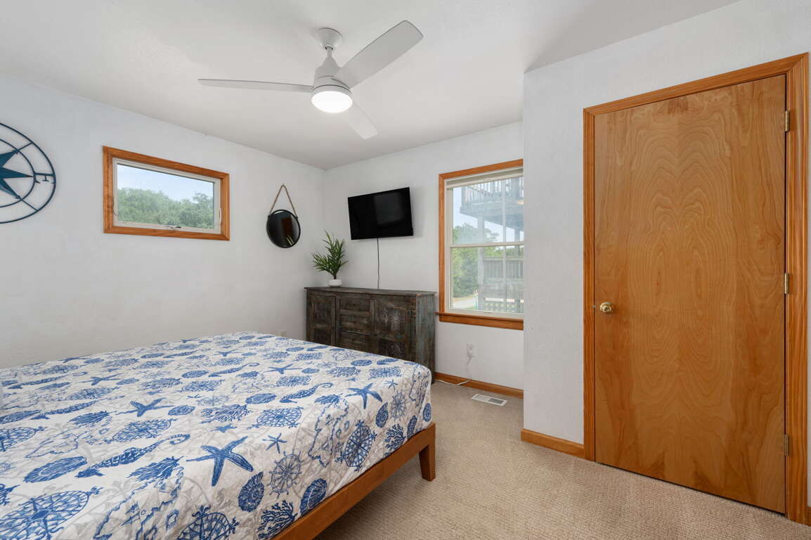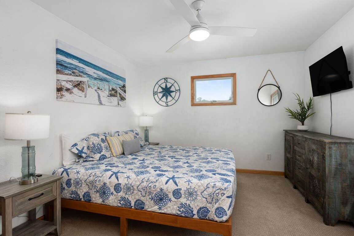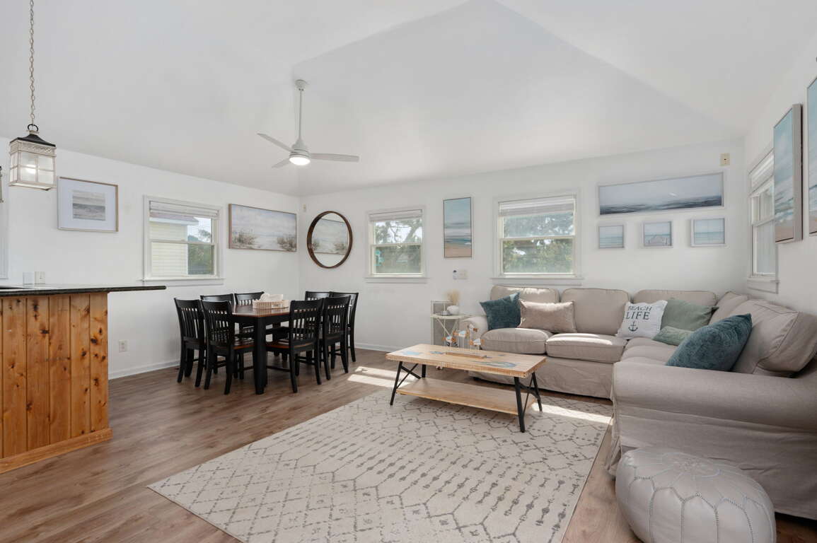 Inside, the home is designed for comfort and togetherness, featuring four bedrooms on the mid-level to accommodate your group. A luxurious King bedroom with private bath provides a serene escape, while the second King bedroom has a private toilet and shares a connecting shower with the bunk room, and the cozy queen room has deck access. Whether you're exploring the charming town of Duck, indulging in local cuisine, or simply savoring the tranquility of your surroundings, Waz Up Beaches promises an unforgettable stay for you, your loved ones, and even your pup!