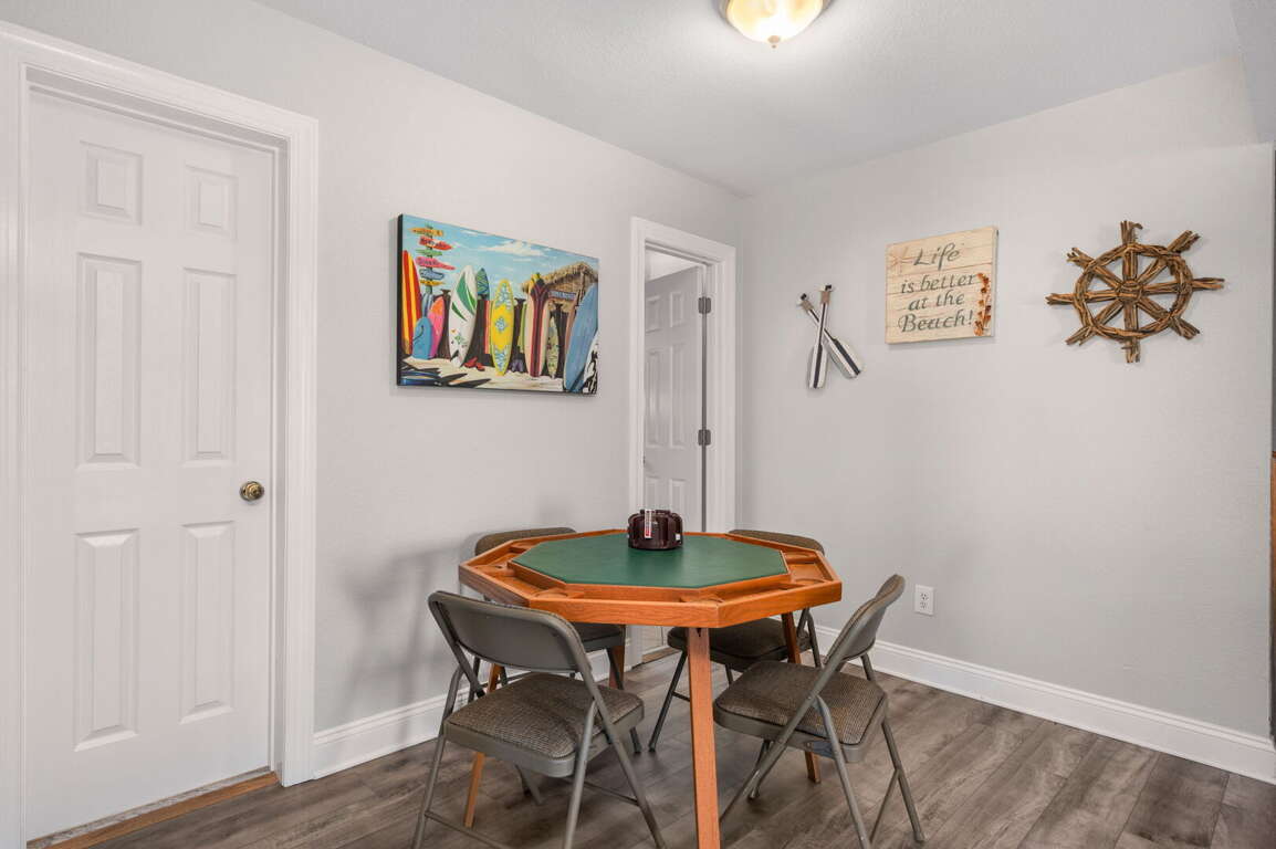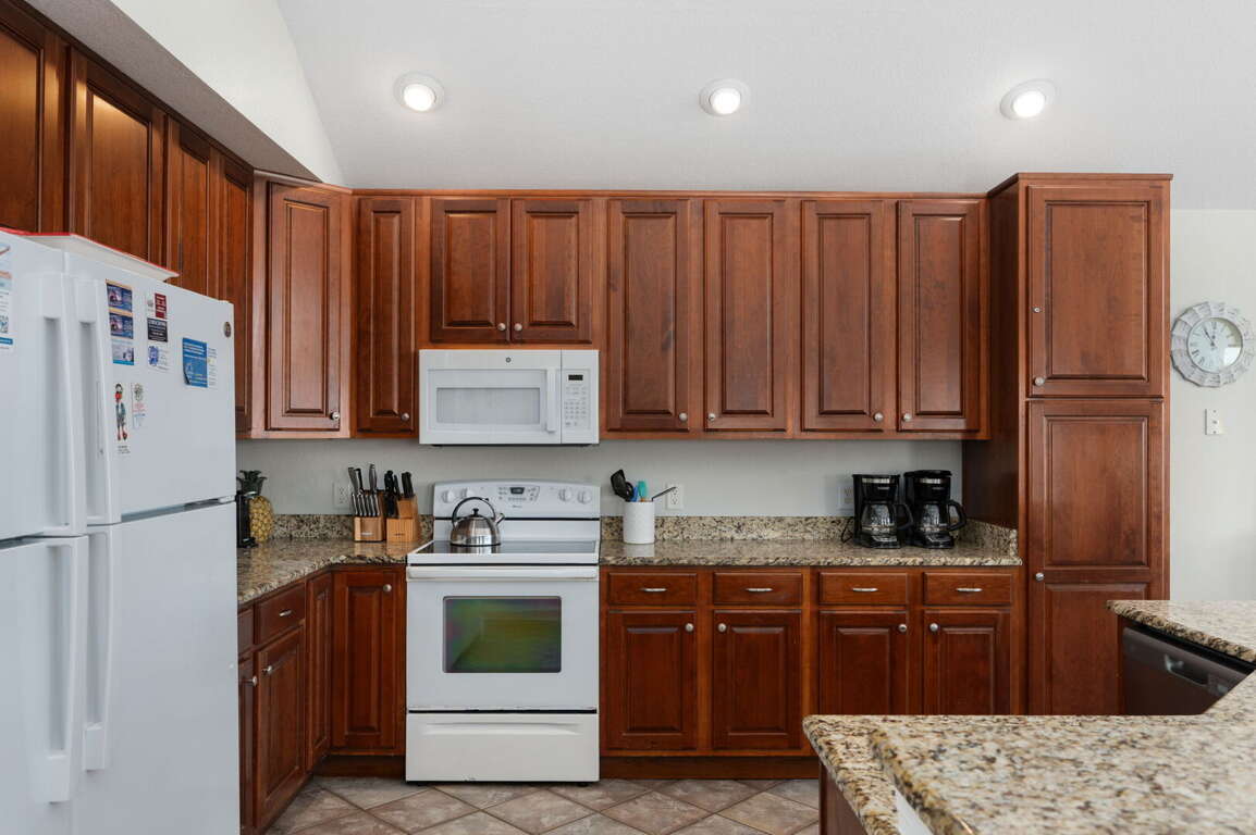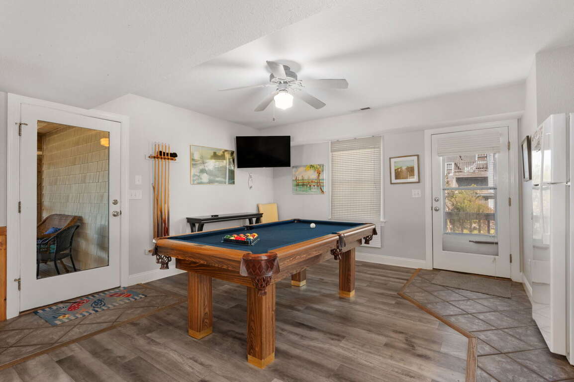 Gone Coastal is designed for relaxation and entertainment. Enjoy your private pool and hot tub on the screened-in porch, or unwind on one of five decks with rockers and a porch swing. Out front, you'll find a horseshoe pit and swing set for outdoor fun! Inside, you'll find three master suites with private baths, and plenty of space with comfortable bedding to relax in. The top-floor master bathroom has a jetted tub and shower for ultimate comfort after a busy day at the beach. For your entertainment, the home is equipped with TVs, and WiFi. Challenge friends and family to a game of pool or poker with the complete poker set. The kitchen is a chef's dream with two refrigerators and two dishwashers, making meal prep and cleanup a breeze.