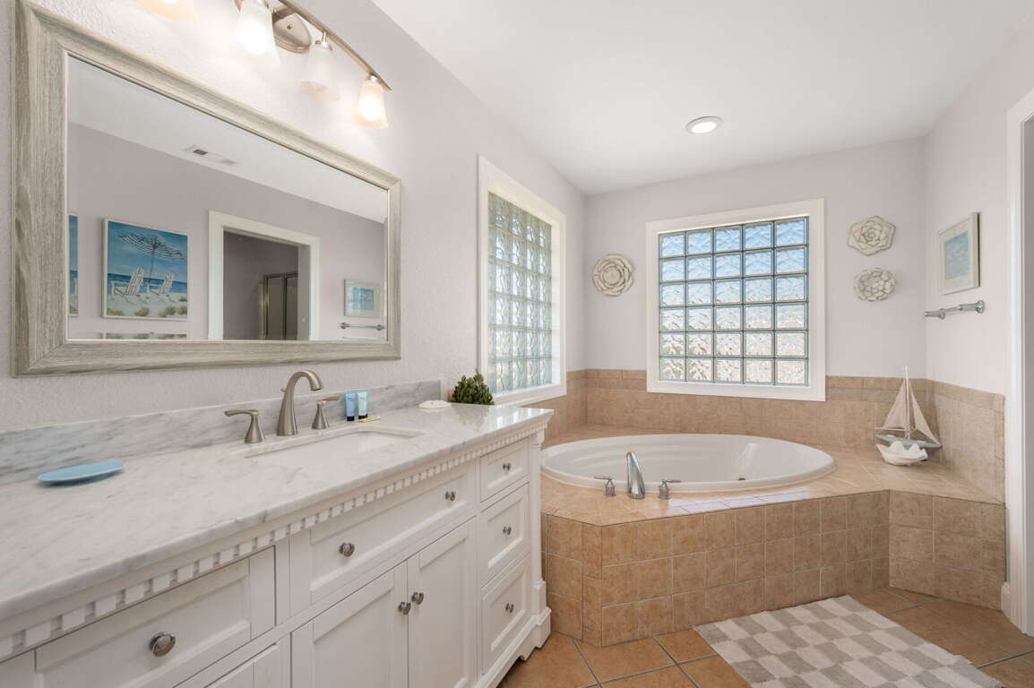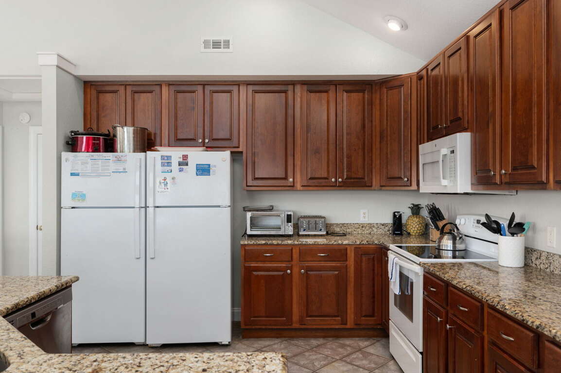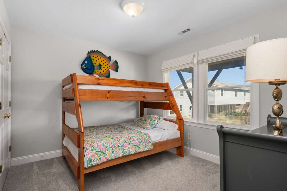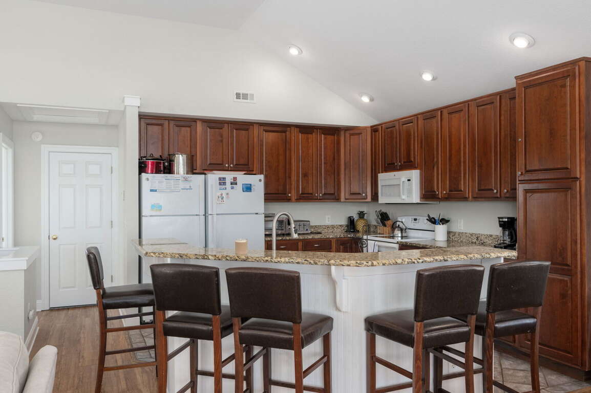 Gone Coastal is designed for relaxation and entertainment. Enjoy your private pool and hot tub on the screened-in porch, or unwind on one of five decks with rockers and a porch swing. Out front, you'll find a horseshoe pit and swing set for outdoor fun! Inside, you'll find three master suites with private baths, and plenty of space with comfortable bedding to relax in. The top-floor master bathroom has a jetted tub and shower for ultimate comfort after a busy day at the beach. For your entertainment, the home is equipped with TVs, and WiFi. Challenge friends and family to a game of pool or poker with the complete poker set. The kitchen is a chef's dream with two refrigerators and two dishwashers, making meal prep and cleanup a breeze.