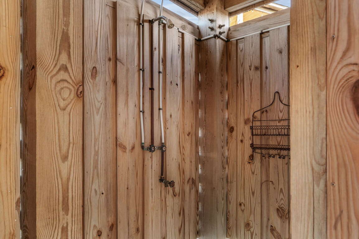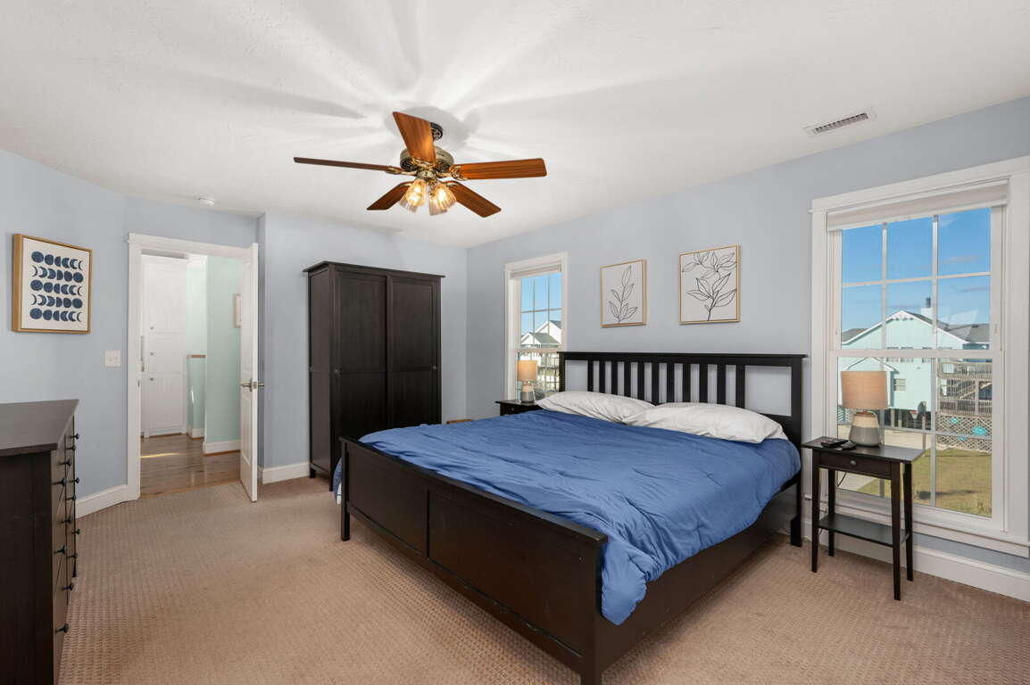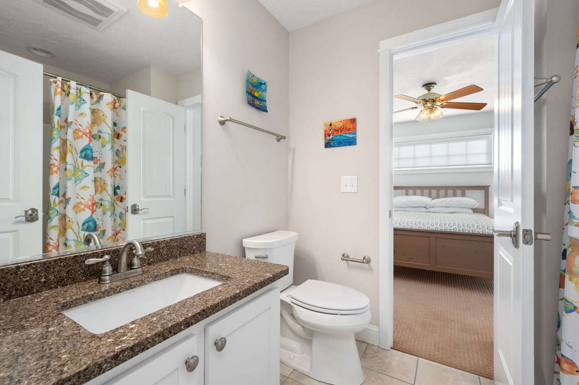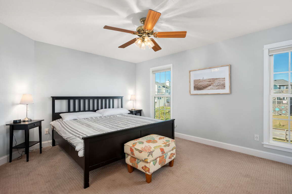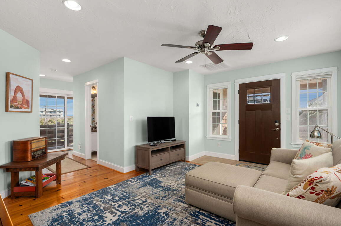 Step outside and find your happy place on two spacious decks The Ranch. Whether you’re lounging in the shade, sipping morning coffee on the covered upper deck with ceiling fans, or hosting a family game night, there’s room for everyone to relax. Inside, the vibrant kitchen has stainless-steel appliances—perfect for whipping up fresh seafood meals or quick snacks before hitting the beach. The colorful living room invites you to gather for movies, board games, or simply unwinding after a day in the sun. The bedrooms are bright, spacious, and furnished with comfort in mind, giving every guest their own peaceful place to rest at the end of the day. After a day of fun, rinse off in the refreshing outdoor shower and watch the sunset and from the decks.