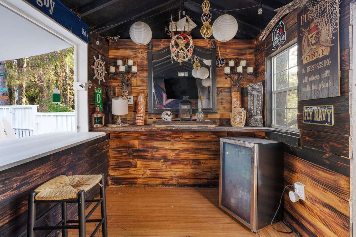 Step outside to your own backyard oasis, complete with a large pool, a pirate-themed bar for refreshing cocktails, and a patio with a gas grill for laid-back meals by the pool. Start your mornings with coffee on the screened-in porch and end your evenings with a soak in the hot tub under the stars. Inside, the bright, open living space welcomes you with high ceilings, cozy furnishings, and coastal decor to make you feel right at home. The fully updated kitchen features stainless steel appliances, plenty of counter space, and everything you need to whip up vacation favorites. There are four bedrooms at Calypso's Cove, each with comfortable beds and plenty of room to spread out and relax after a busy day of exploring the OBX.