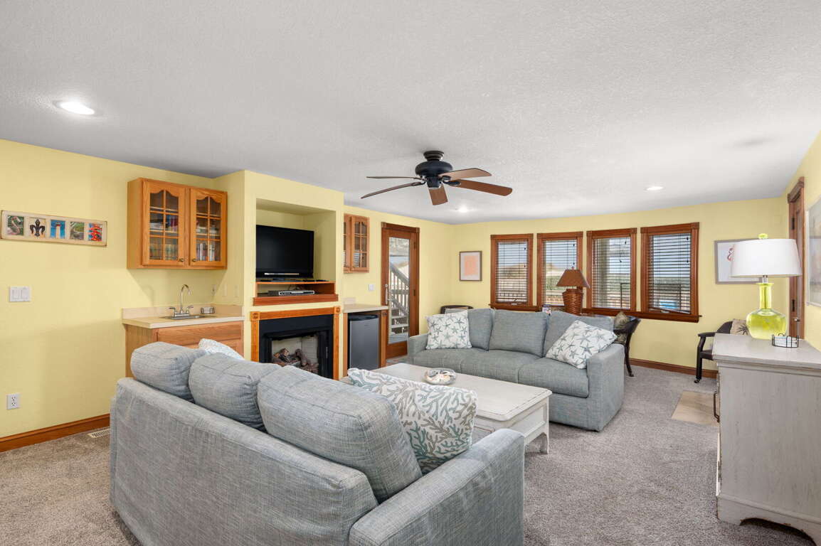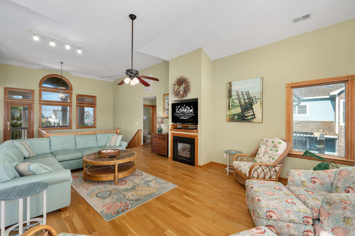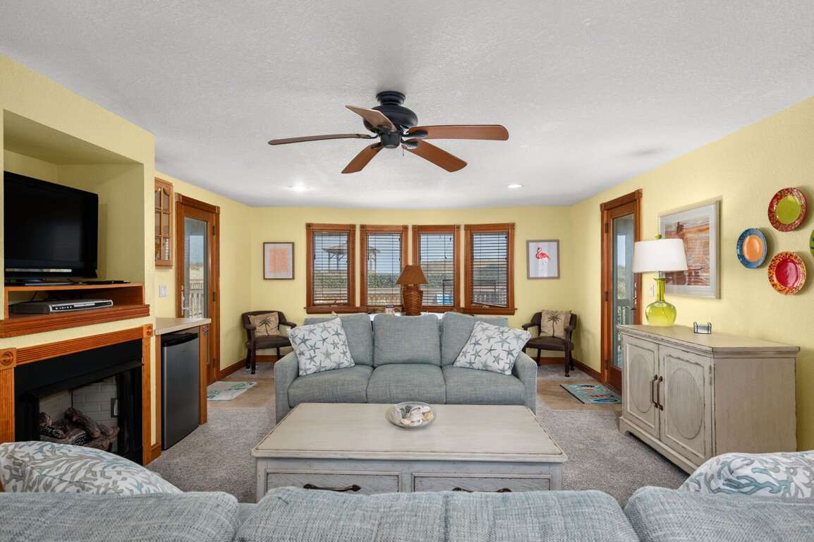 When it’s time for some indoor fun, head to the game room for a round of pool, or enjoy a movie night in one of the comfy living areas with ocean views. After a long day in the sun, the sauna offers the perfect spot to relax and recharge. Guests of Shore Beats Work also have access to the Villages at Nags Head community amenities, so there’s always something new to explore.