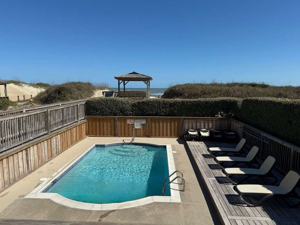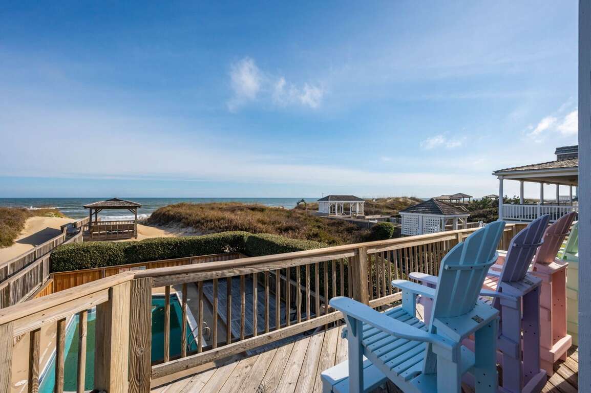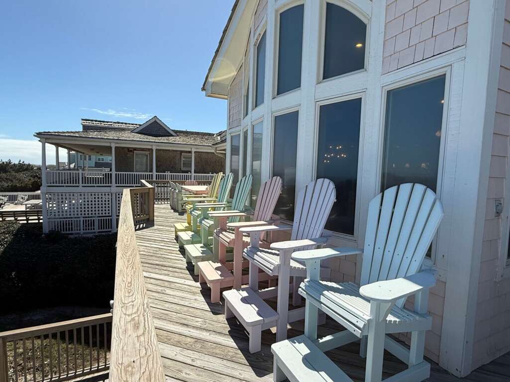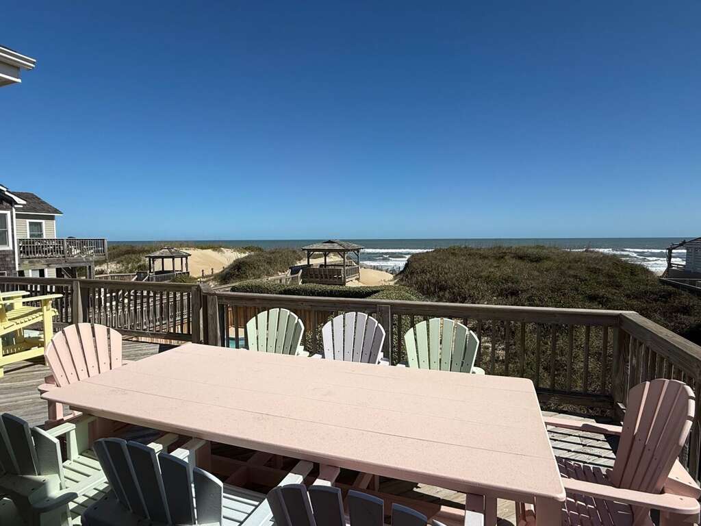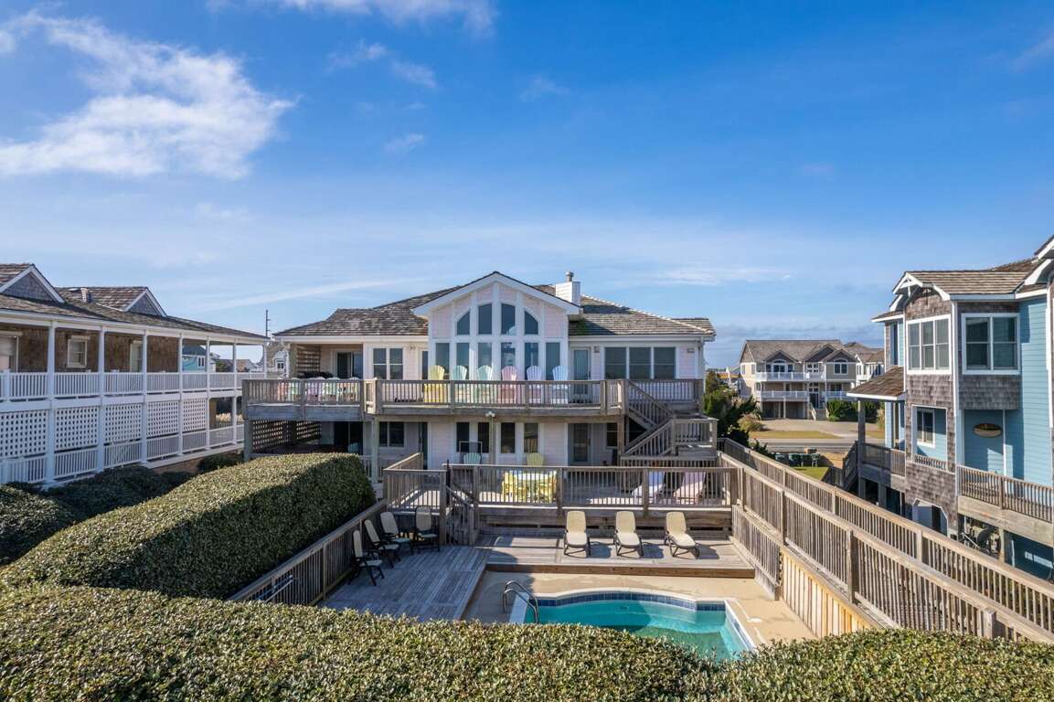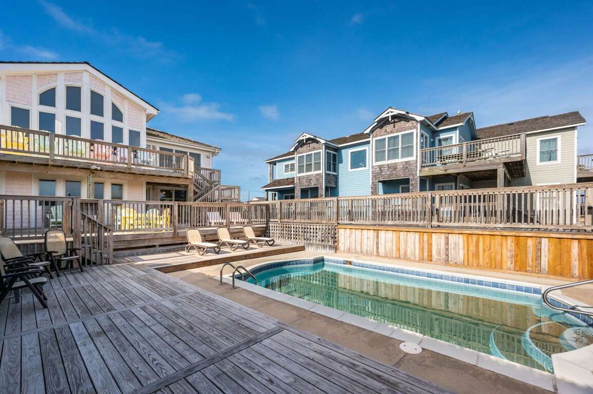 Located in Nags Head, NC, De08 Shore Beats Work is a stylish vacation rental with 8 bedrooms, a private pool, a hot tub, and a breathtaking oceanfront view.