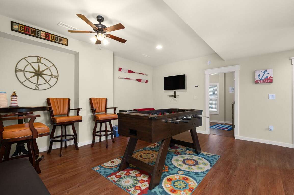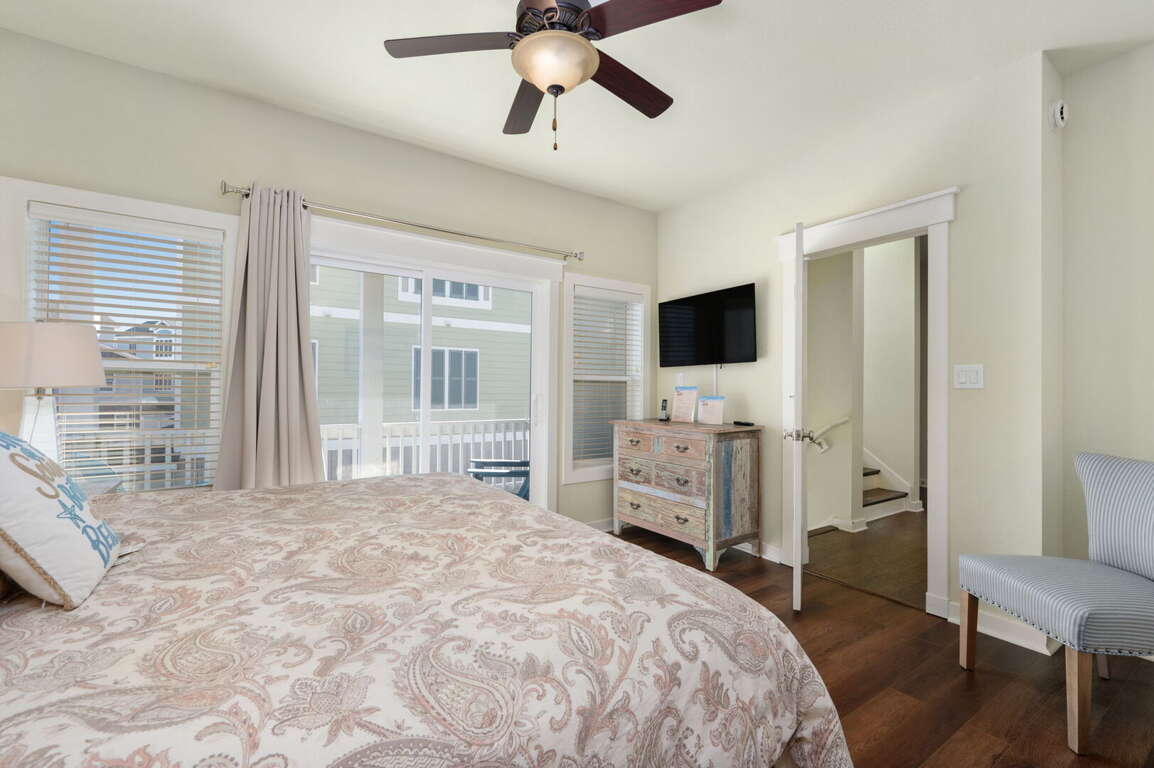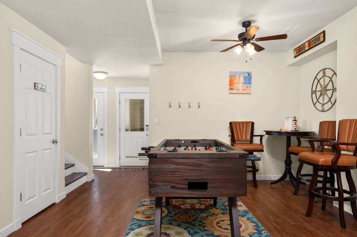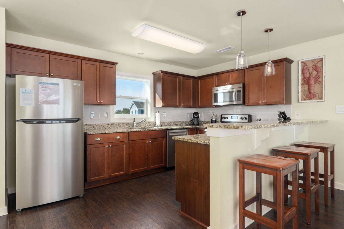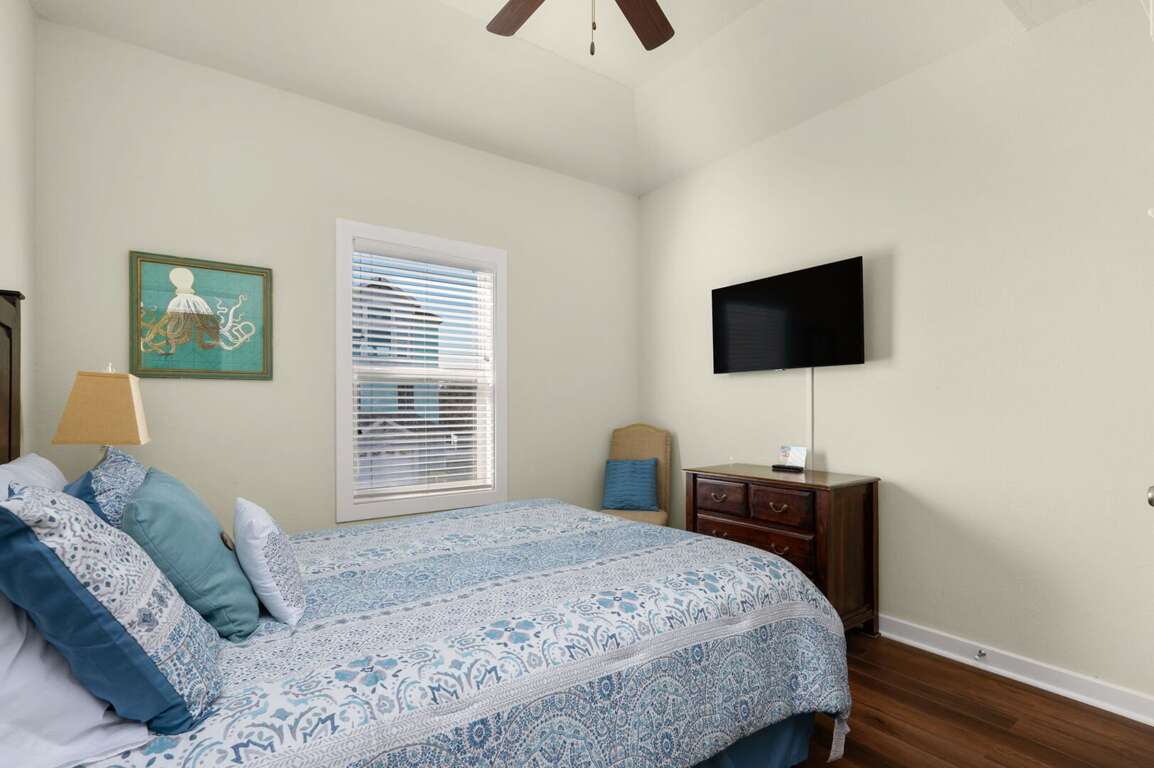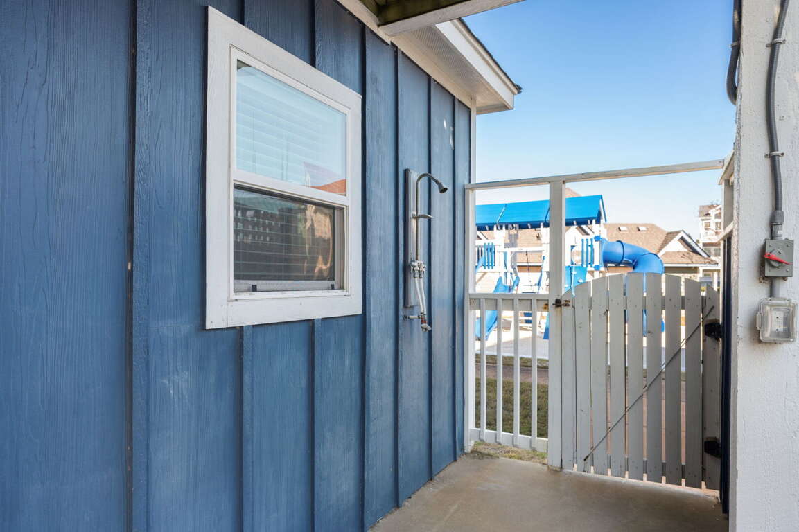 Step outside to your private fenced courtyard with an open outdoor shower, bar seating for two, a relaxing hot tub, and a charcoal grill — perfect for casual evenings under the stars. Beach gear, games, and thoughtful extras make it simple to settle in and start making memories from the moment you arrive. Guests also enjoy access to fantastic community amenities including a pool, volleyball court, playground, and picnic areas.
