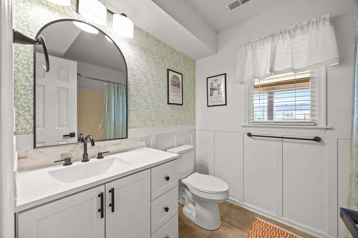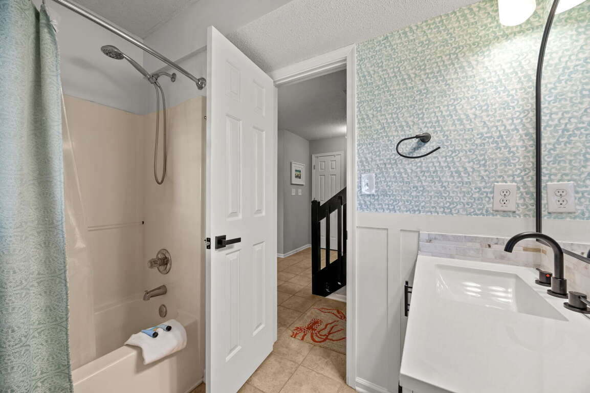 Tucked away in a quiet Westside neighborhood, Finn Tales offers the best of both worlds: peaceful surroundings with easy access to it all. Spend your days at nearby lifeguarded beach accesses, then explore local shopping, restaurants, movie theaters, and family favorites like putt-putt golf—just minutes away. And because vacations are better with everyone along, dog family members are welcome too. Bring your pup and make Finn Tales your home base for a laid-back Outer Banks escape you’ll want to return to year after year.