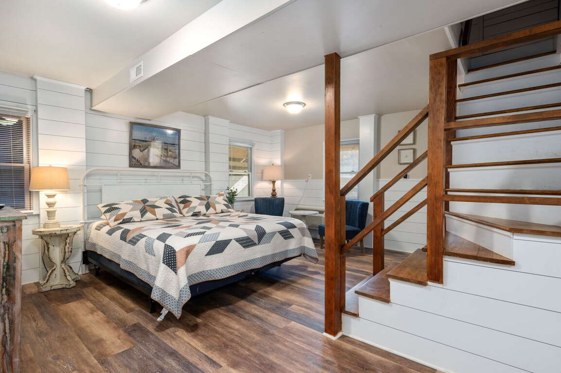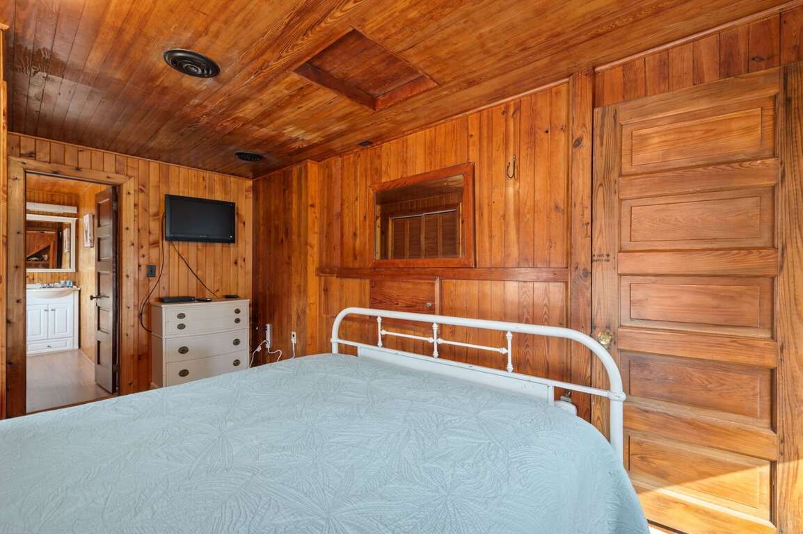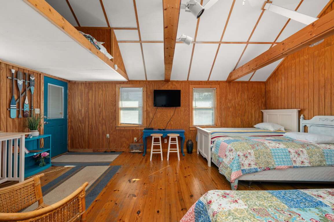 On the lower level, a spacious bonus room features a king bed, a double bed, and a full bath—ideal for additional guests or a family suite. At the entrance to the property, a separate bungalow offers even more privacy with a king bed, a twin bed, and its own full bath.