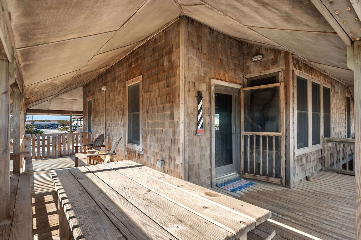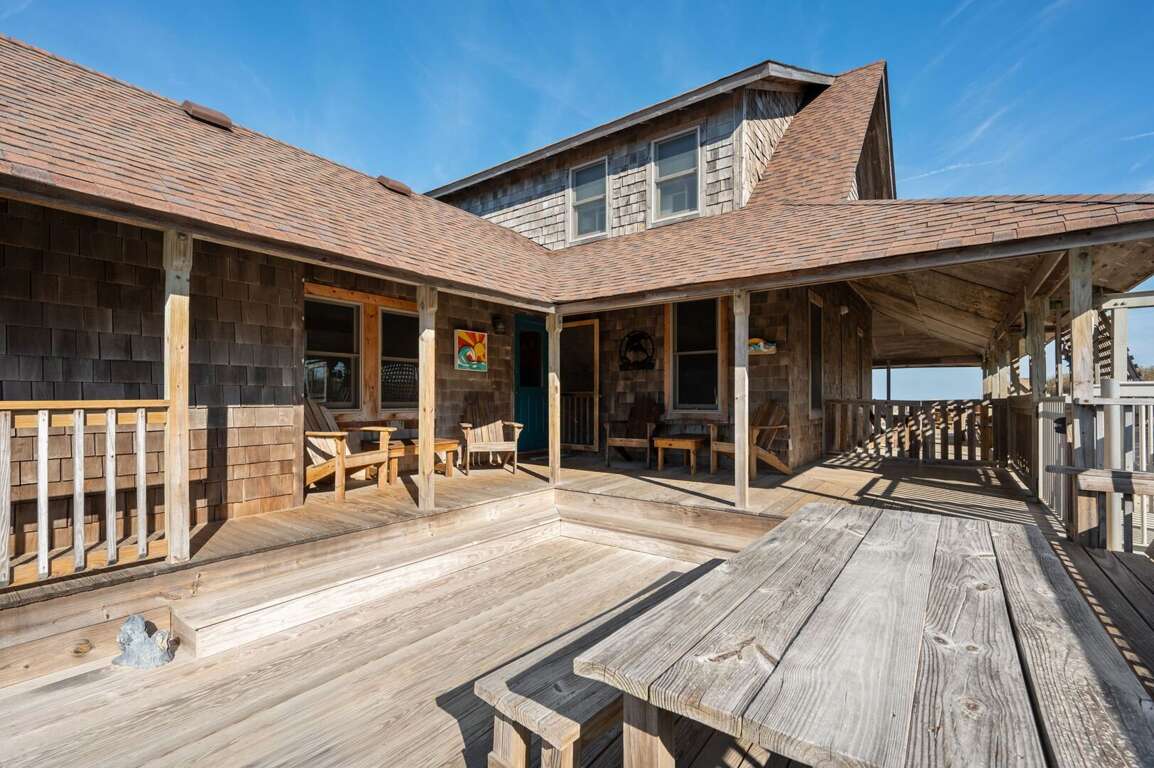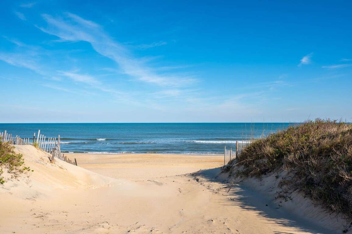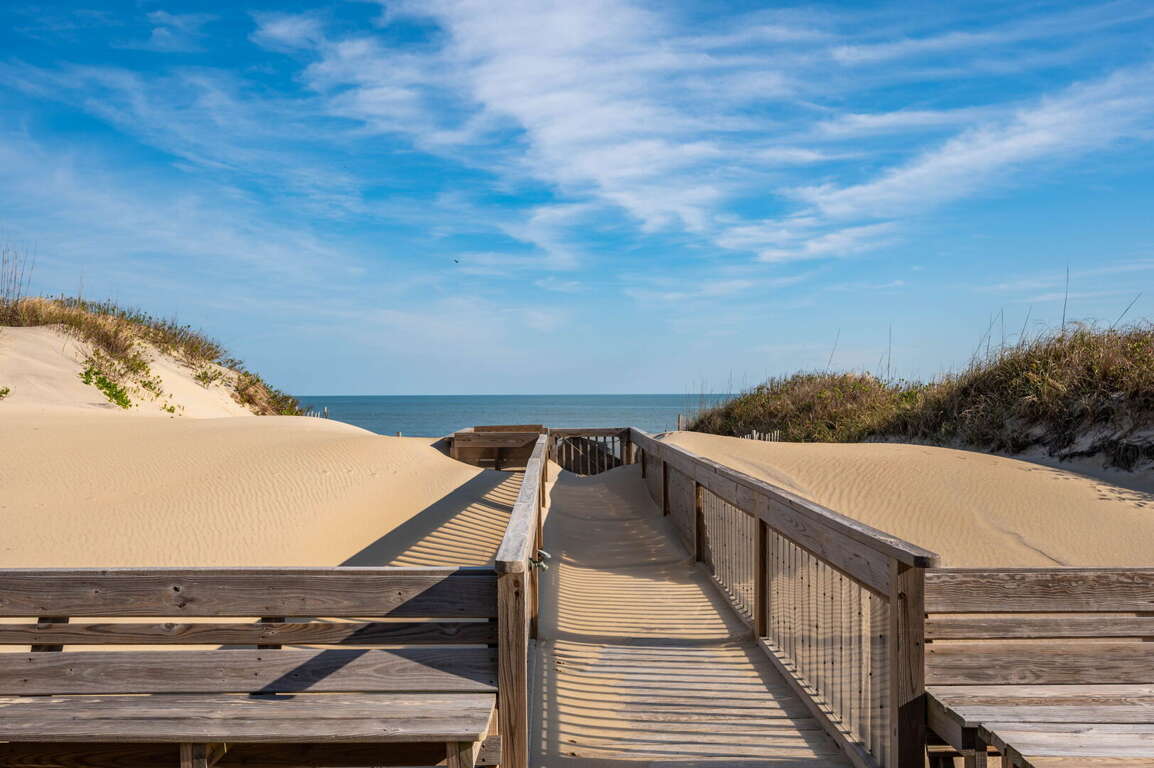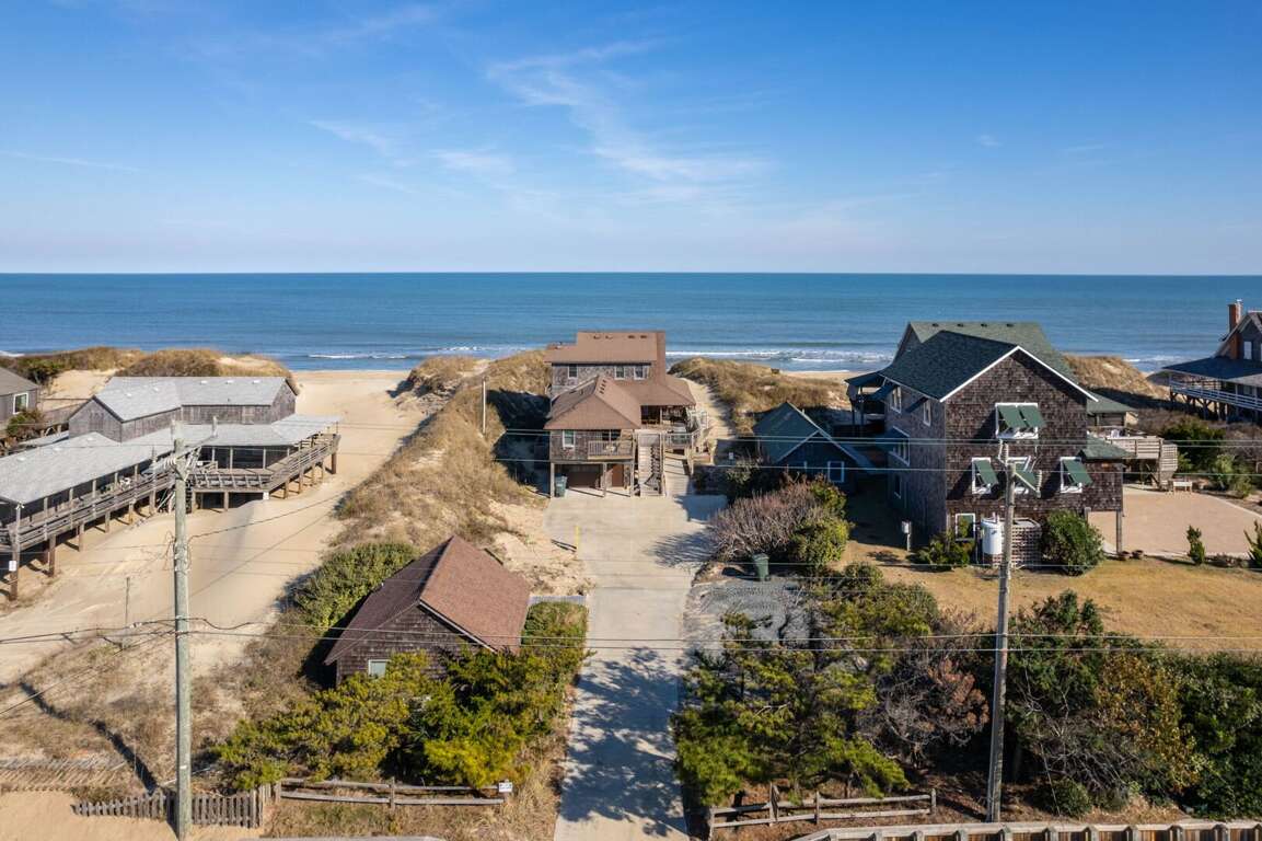 Nestled in the charming Historic Loop, this beautifully preserved coastal home blends classic Outer Banks character with the modern comforts you love. Wide porches and sun-soaked decks—complete with cozy rocking chairs—set the tone for slow mornings and breezy evenings. Best of all, your own private walkway leads you straight to the sand.