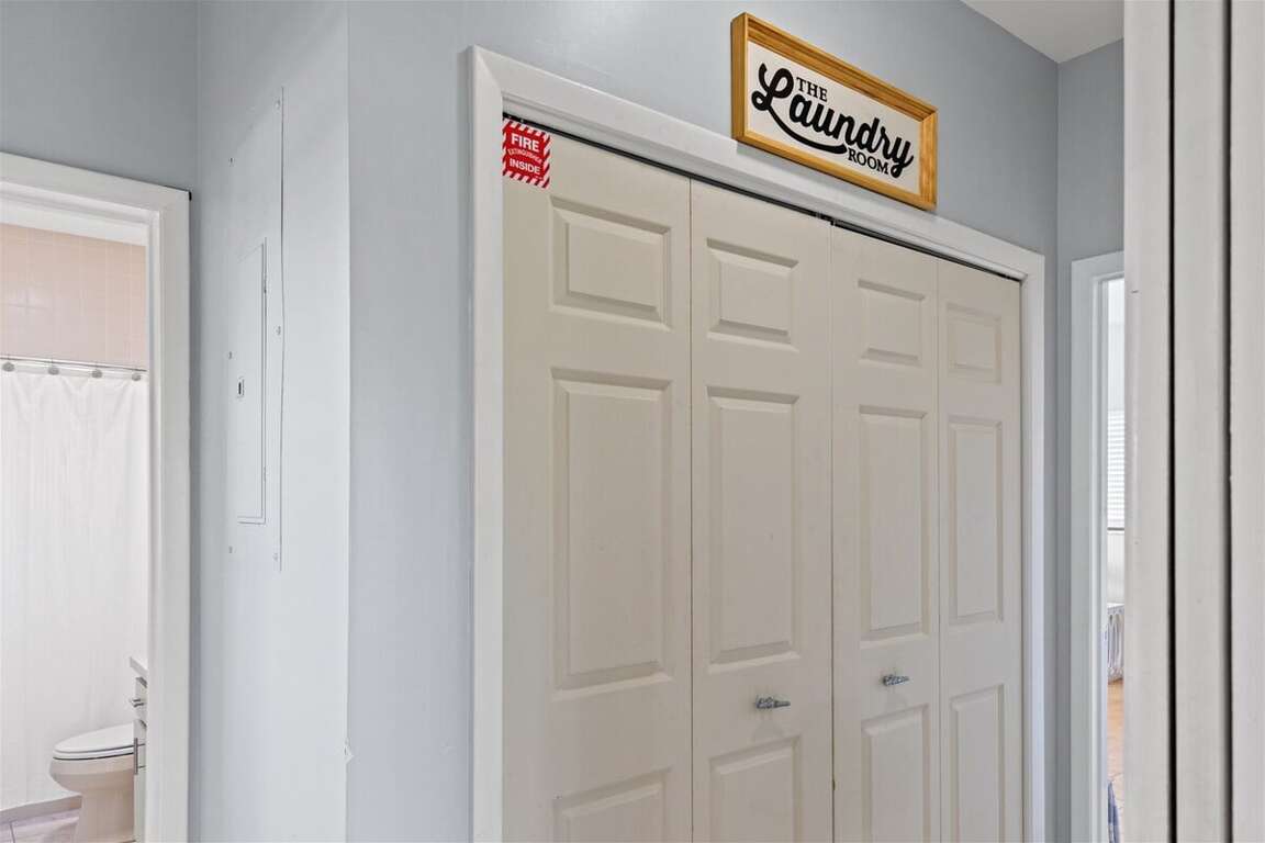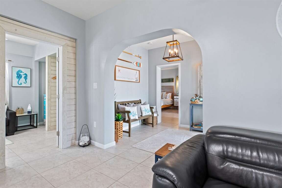 On the second-level main floor of this beautiful Marathon rental, the open-concept kitchen, living room, and dining area welcome you with abundant natural light, creating a bright and airy space. Light tile floors and neutral tones set the perfect waterfront ambiance. To the right, the master suite features a private balcony overlooking the canal. To the left of the kitchen, two elegantly decorated guest rooms (bedrooms 2 and 3) and a spacious laundry area await. Off the main living room, a cozy additional room with a sofa bed provides extra sleeping space.
