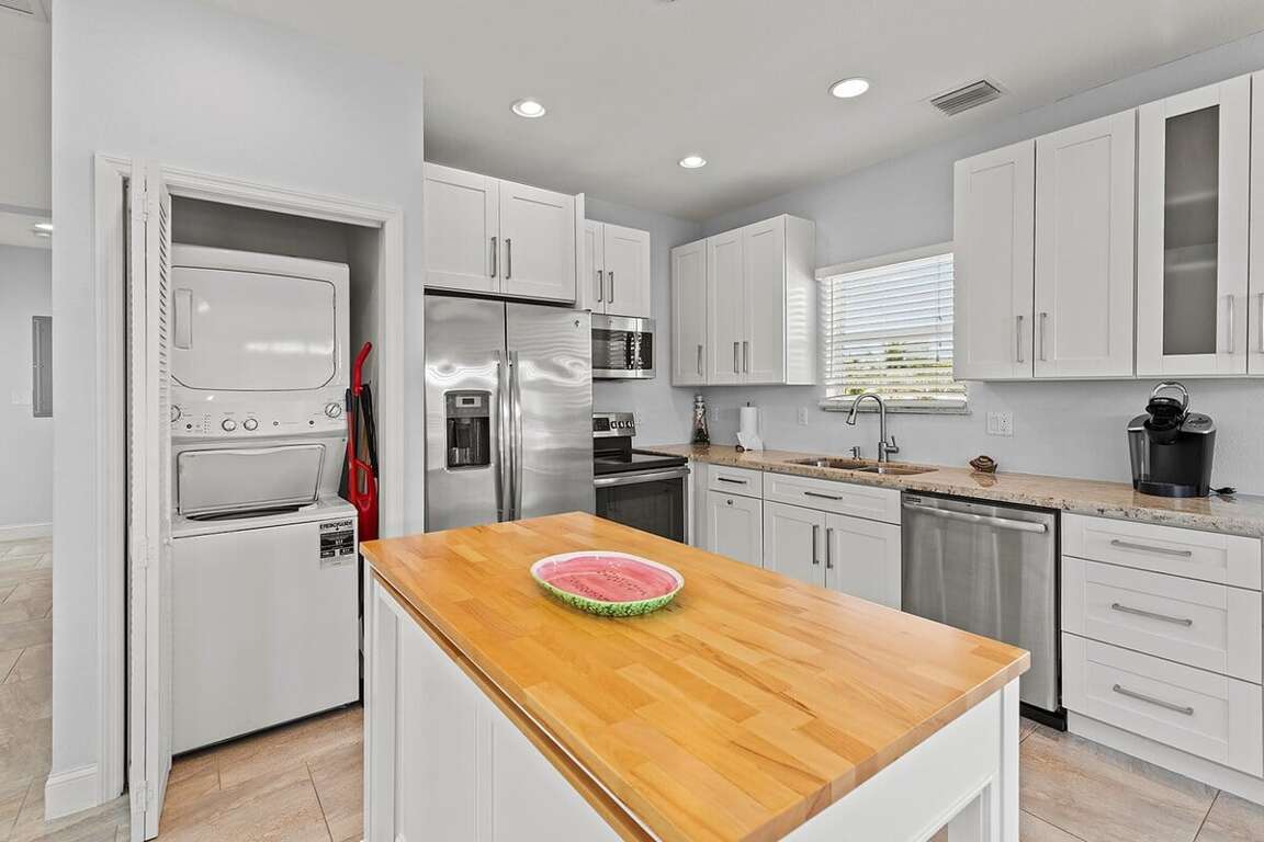 Coco Plum Vacation Rentals provides a complimentary starter kit of soaps, toilet paper, paper towels, dishwasher detergent, and laundry detergent. Guests will need to provide ongoing supplies for their stay.