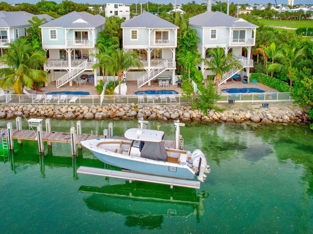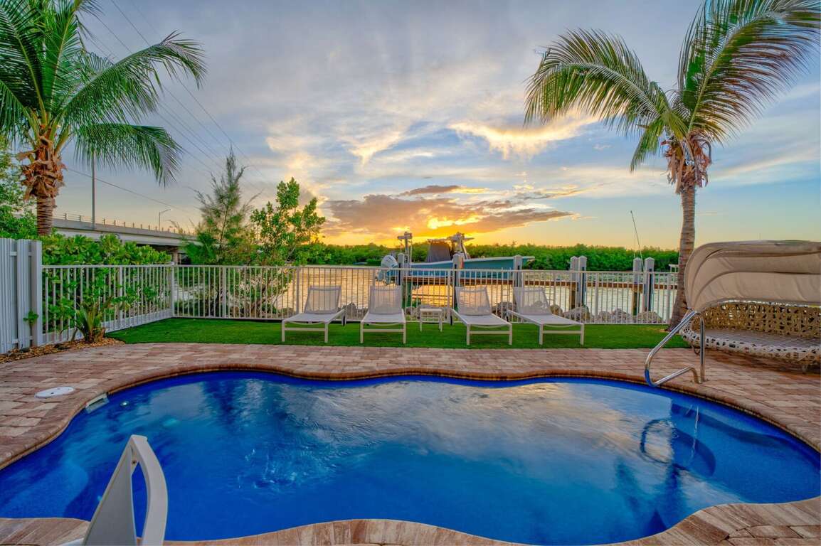 Step into your private Florida Keys paradise. The ground level features tropical landscaping, a quiet and secluded neighborhood directly on Vaca Cut with easy Gulf and Ocean access, and a brand-new community build. Enjoy your own private heated pool and separate hot tub, gas grill, and outdoor dining area with poolside loungers. Fish from the 30’ dock with power and water, clean your catch at the community fish cleaning stations, and store your bait in the on-site freezer. Two bikes and cornhole are provided for your entertainment. There’s also convenient trailer parking, a waterfront gazebo, and on-site amenities designed for boating and fishing enthusiasts.