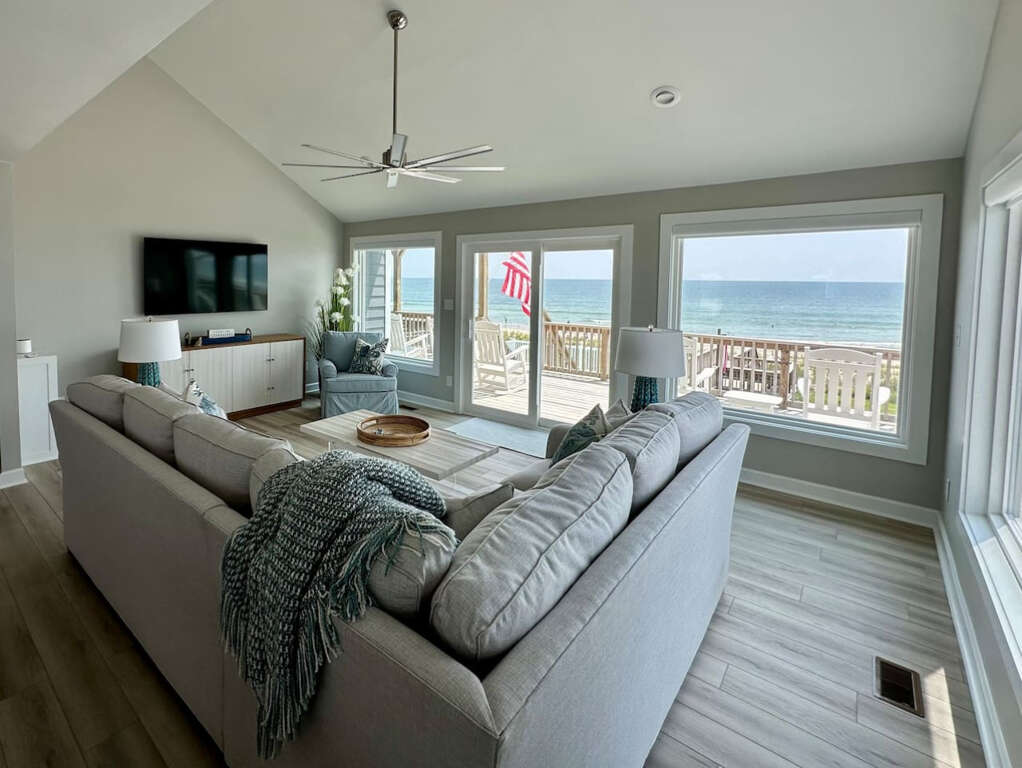 This newly renovated oceanfront home has 5 bedrooms; 5 baths and sleeps 14 people.