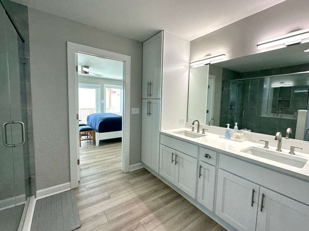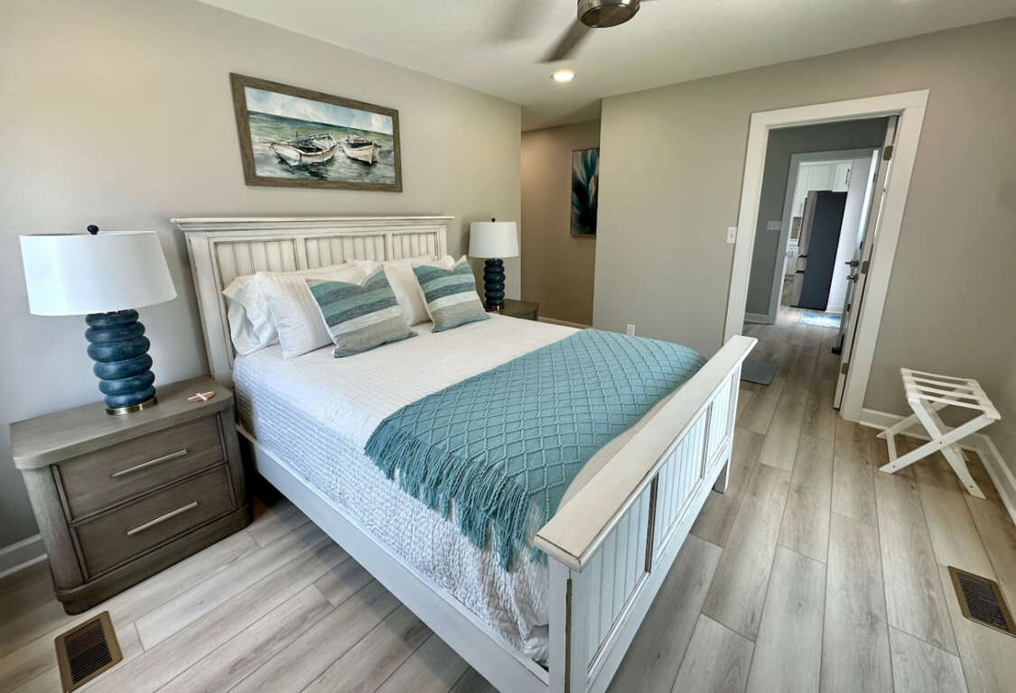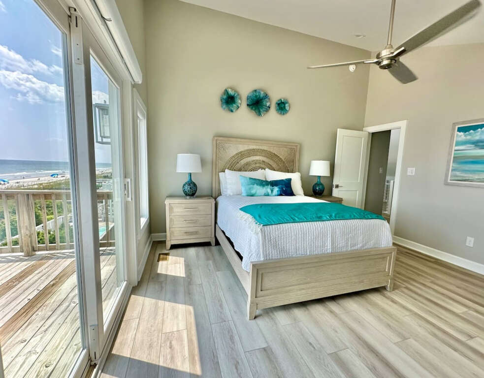 - Master Suite #1 on the main level: king size bed; deck access; master bath