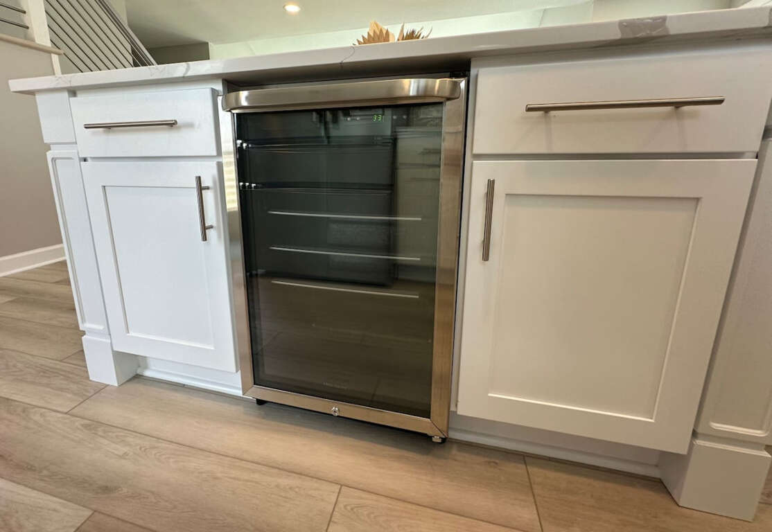 - Fully stocked kitchen with beverage fridge; kitchen bar with seating